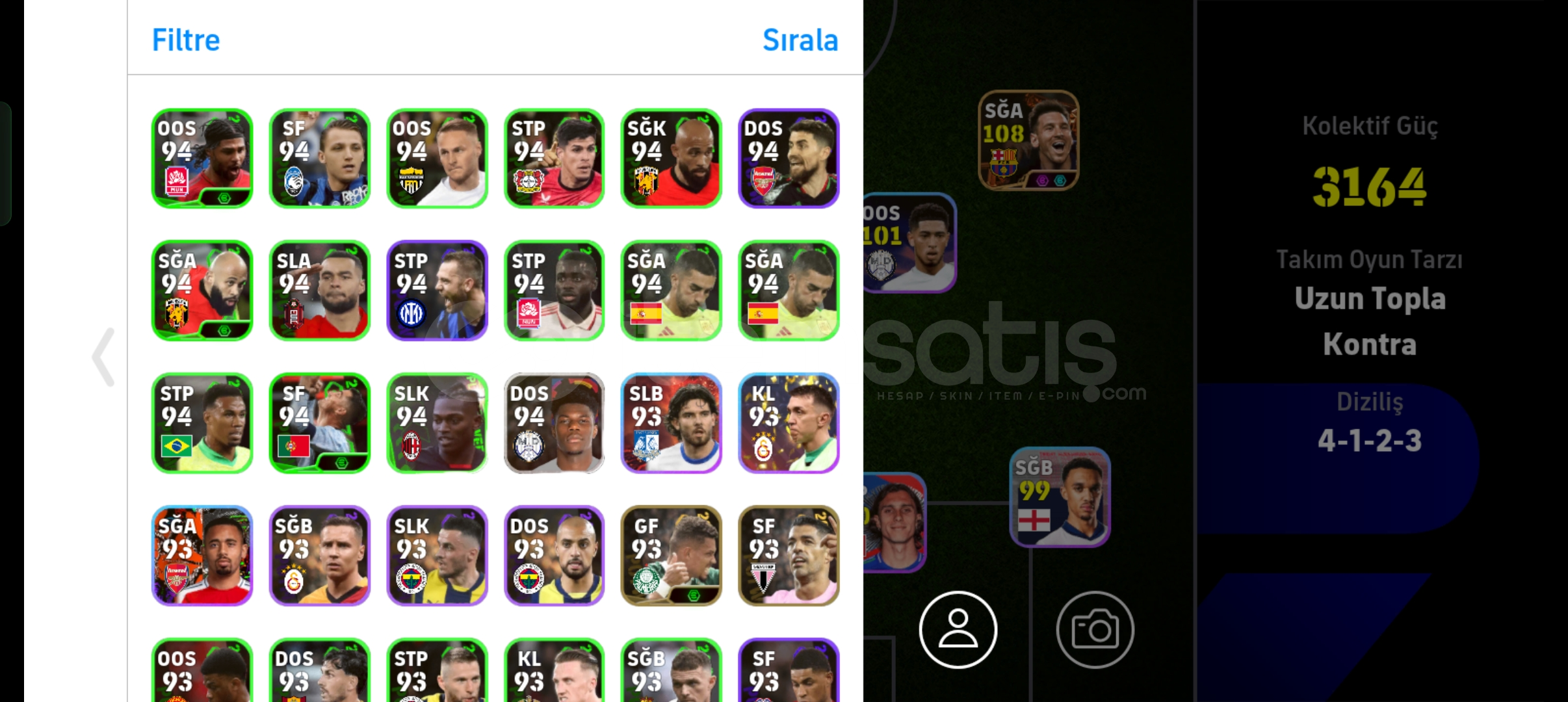 - İnter paketi- Bayern paketi - Özel td ler-108 Bombacı messi- Ve diğerleri