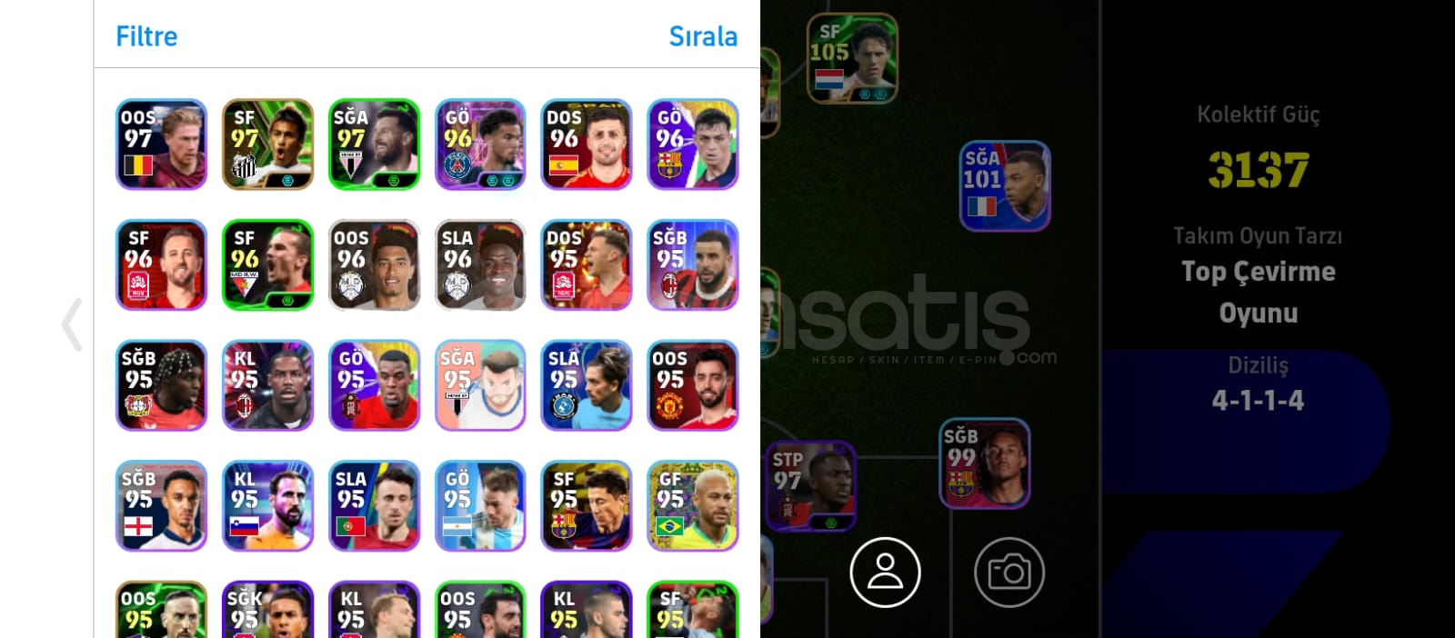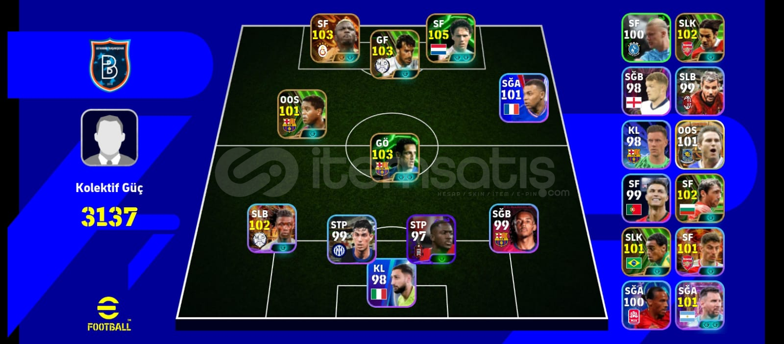 107 OSİMHEN 105 VAN BASTEN 102 CAMAVİNGA 103 VANNİSTERYOL 103 BELLETİ101 LAMPARD DOLU REZERV KASILMALIK HESAP