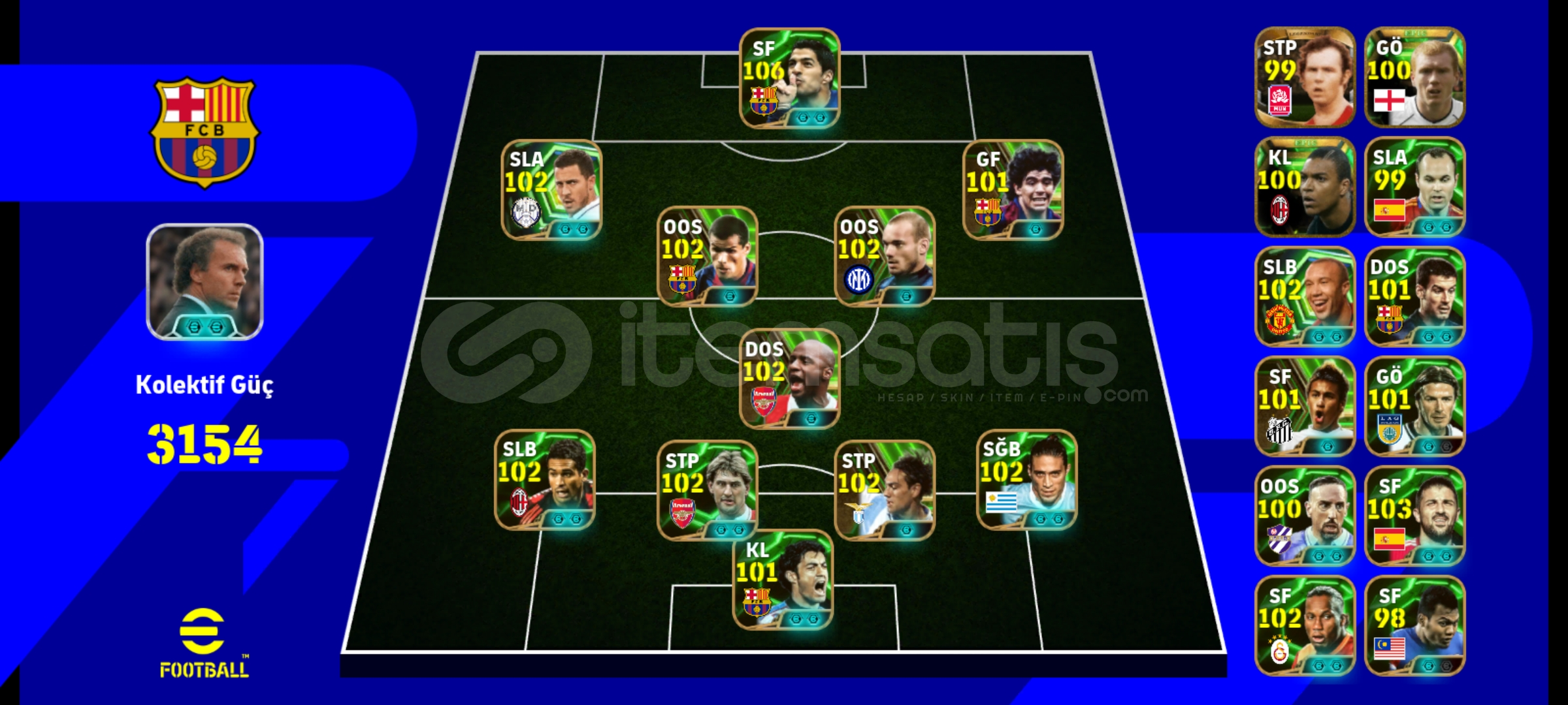 Satılık Pes 21 Hesabı Dopdolu Rezerv Eski 21 İcon Kadro Destansı Kadro 313 Oyuncu 17 forma 3 Tane güçlendirici Menajer Kolektif Güç Yükselir Fotoğrafta Gördüğünüz gibi Hesap Tek Bağdır Konami İd Alana Hayırlı Olsun