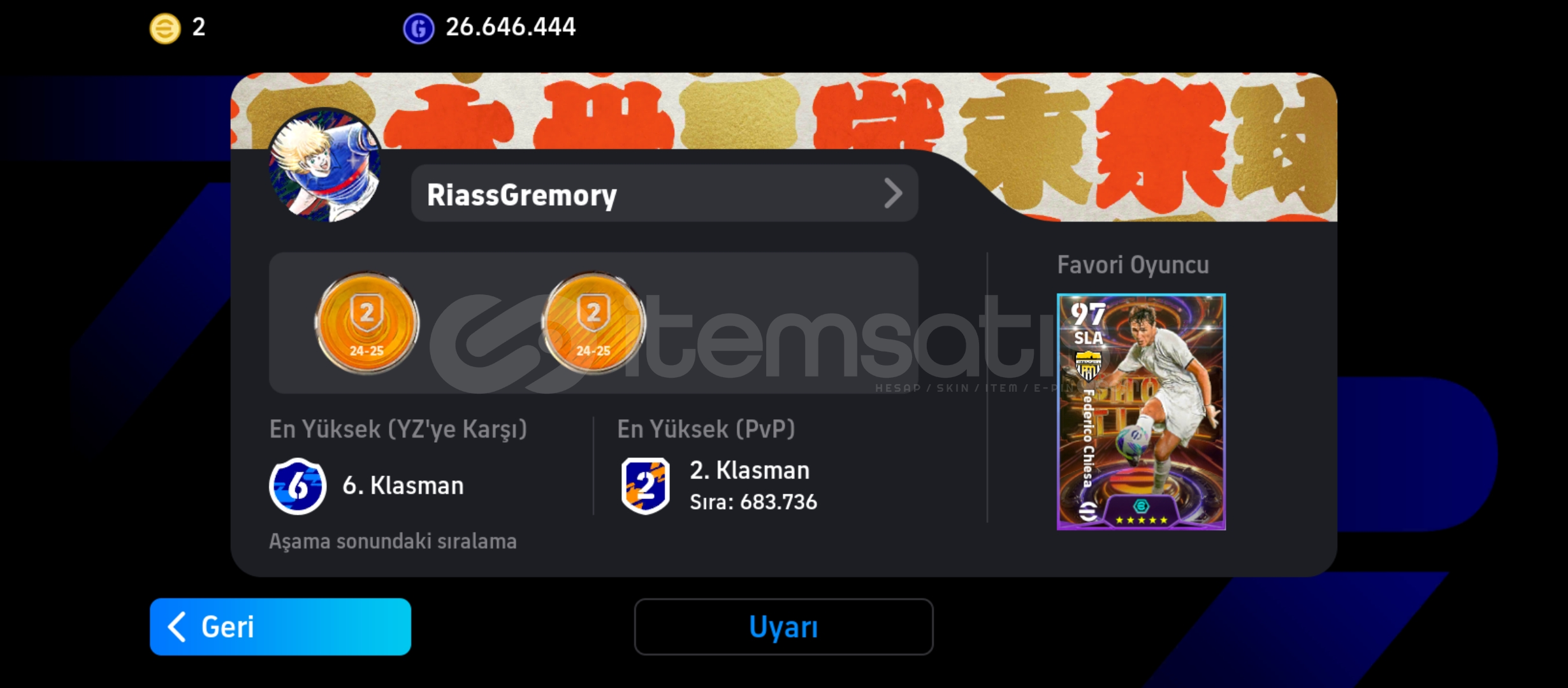 Giriş hakkı mevcut olmayan hesapların satışı KESİNLİKLE yasaktır. Lütfen bu şekilde bir ilan tespit ettiyseniz canlı desteğe bağlanarak lütfen bildiriniz.