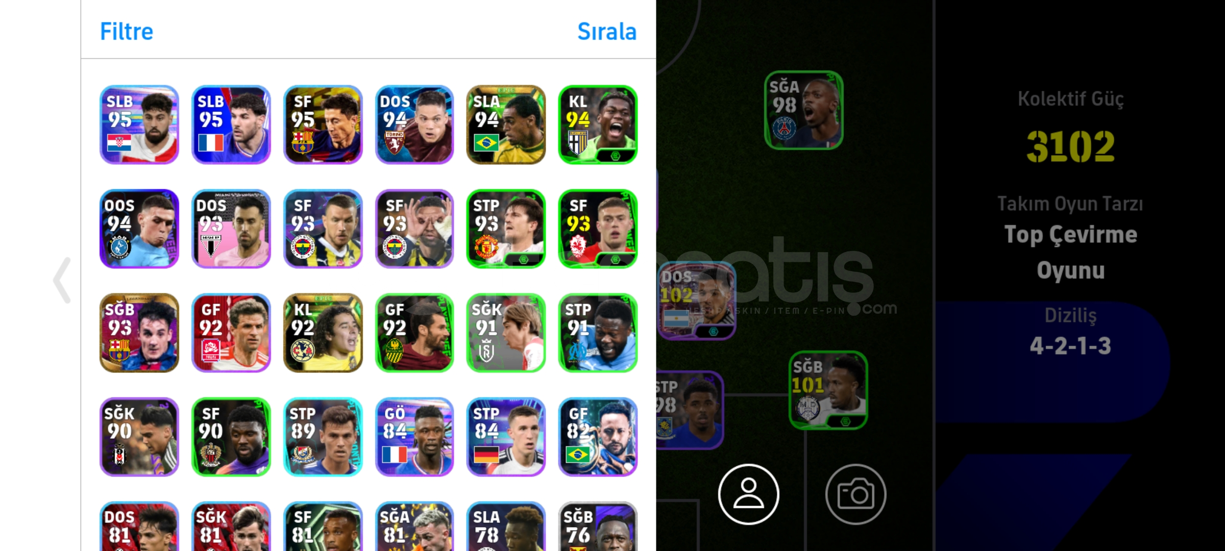 Nadir kartlar bulunmaktadır.Hesap eski hesaptır2 Show time kartı vardır eski enzo fernandes ve ruben dias.Tam oynamalik müthiş hesaptır