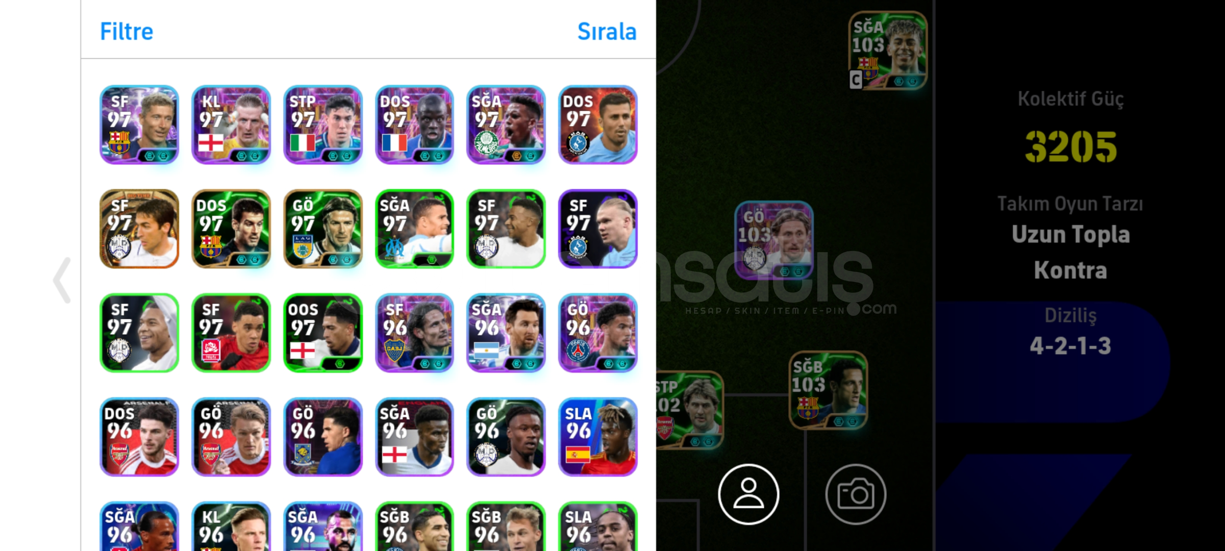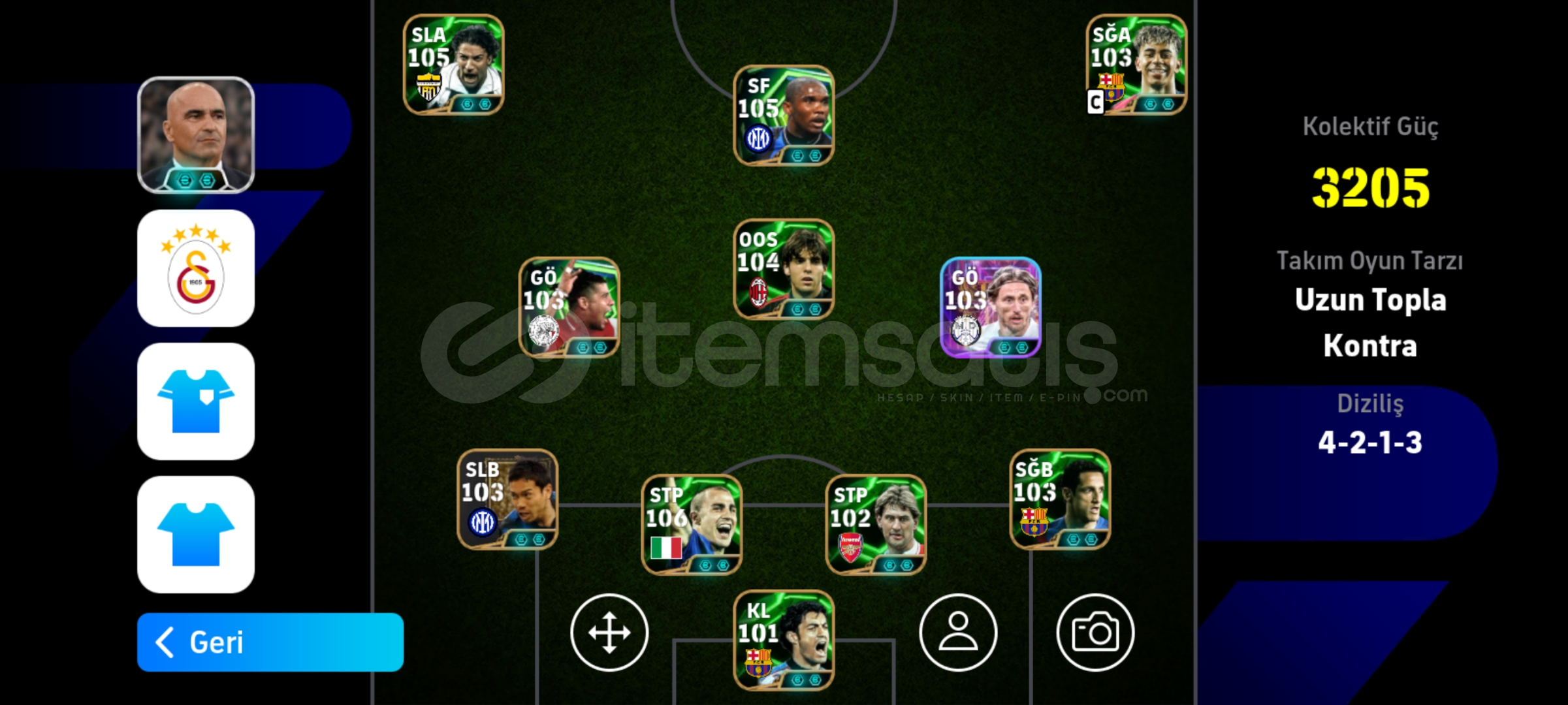 Öncelikle merhaba arkadaşlar hesap 3207 olcak 103 oyuncuyla lamine yamal bombacı del piero özel basım hesapta 200.300 MC var 6 paralı menejer var hesap tek bağ indirim olur dmden ulaşabilirsiniz
