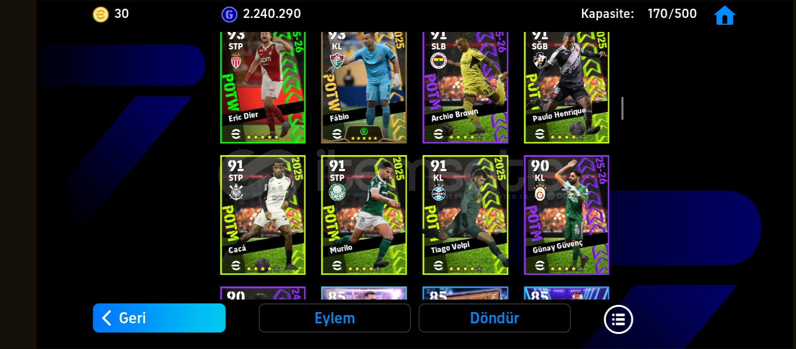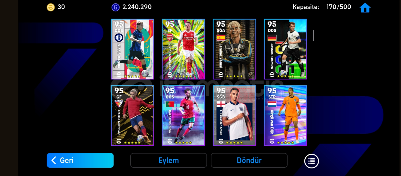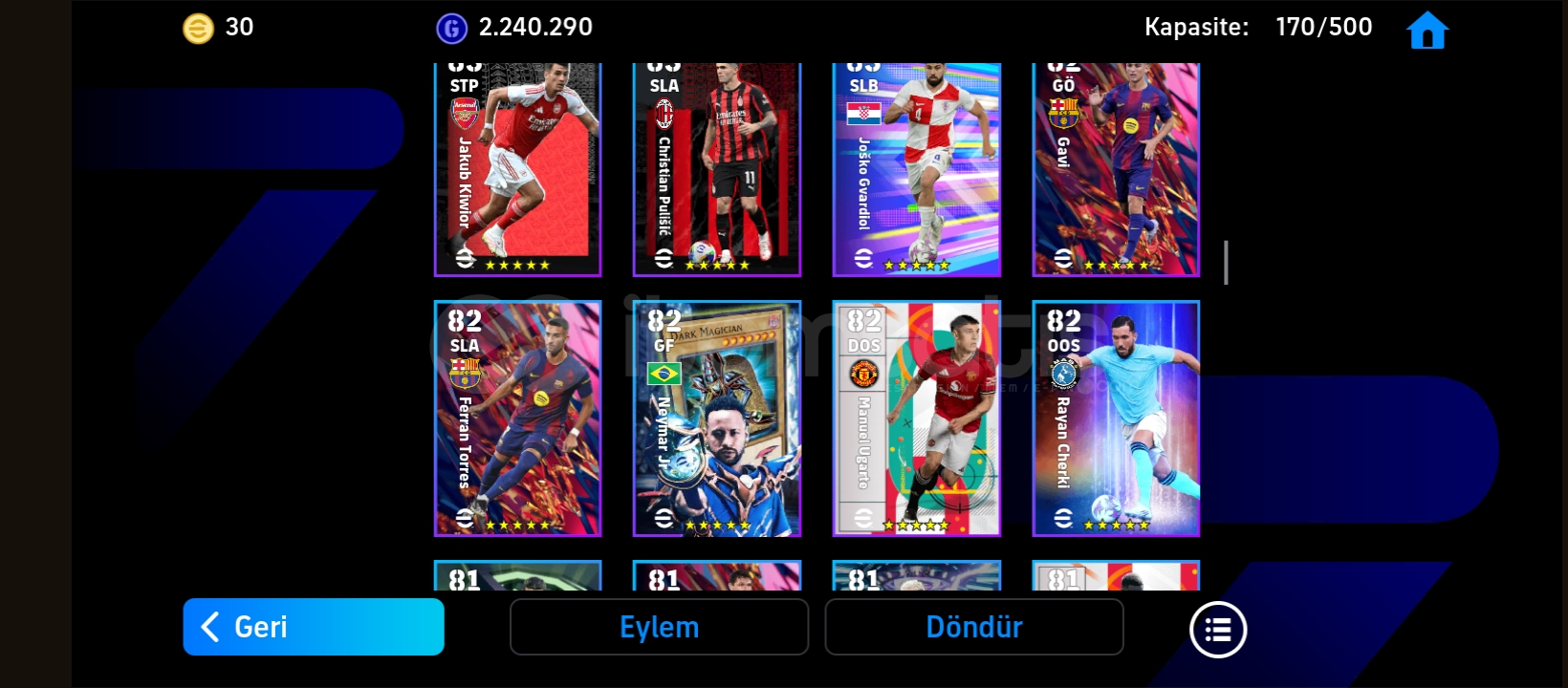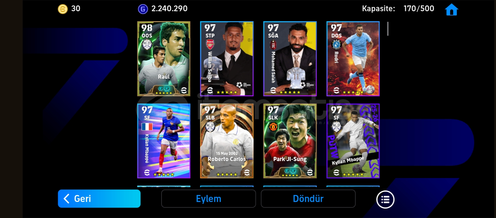 Hesapta 2 milyon gp var farklı liglerden oyuncular oyuncu stoğu yeni başlayanlar için mükemmel tek bağ konami id pazarlık payı vardır belki cüzi bir miktar daha pazarlık olabilir5 6 adet epic futbolcu SAKIN KAÇIRMA