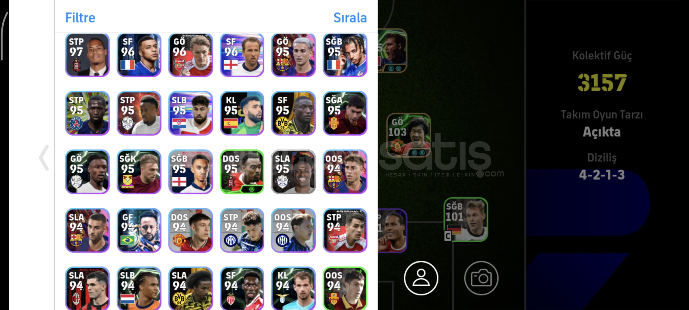 ANDROİD İOS TEK BAĞ KONTROL EDİLDİ -MC YOK 3157 KOLEKTİF GÜÇ2 BOMBACI 105 LAUTRO MARTİNEZ 105 VİERİ DİĞER EPİCLER 101 DAVİNSON SANCHEZ 102 TORRES 103 PARK Jİ SUNG 102 VAN NİSTERROLY 3.KLASMAN GÜZEL SÜPER LİG KADROSU VE POTW KADROSUÖZEL MENAJERLER FABREGAS VE AMORİMREZERV GÜZEL FIRSAT HESABI KAÇIRILMAZ