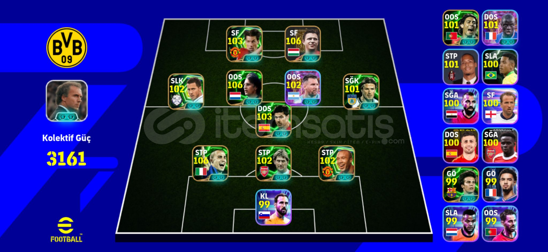 106 Cruyff106 Puskas106 Cannavaro103 Xabi Alonso103 Nistelrooij102 Eden Hazard102 Tony Adams102 Silvestre102 David Backham102 Messi102 Kanteve daha fazlası...3 ADET TEKNİK DİREKTÖR VARDIR -MC YOKTUR TEK BAĞ KONAMI ID'DIR SORUNSUZ 10 NUMARA HESAPTIR ALAN KİŞİYE HAYIRLI OLSUN