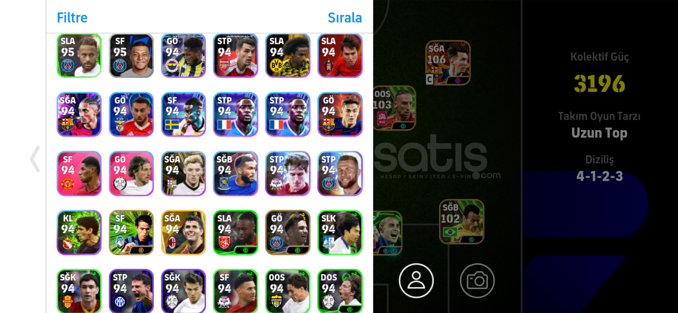 3196 1. Klasman 106 Messi 4 Güçlendiricili Menajer Rezerv Dolu 18 Milyon GP Fotoğraflardaki Gibidir Sorunsuz Hesap Site Dışında Daha Ucuza Verebilirim Sitede Fiyat Bu