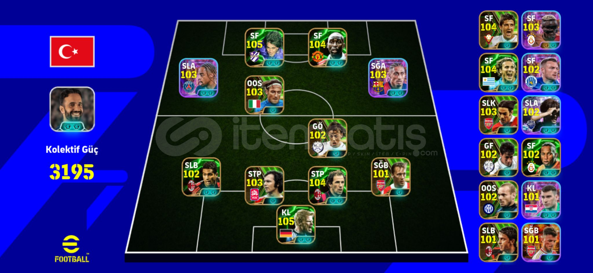 106 Kahn105 Batistuta105 Baresi105 Forlan104 Villa104 Osimhen104 Andy Cole104 Raphinha104 Totti103 Barcola103 Pires103 Beckenbauerve daha fazlası...2 ADET TEKNİK DİREKTÖR VARDIR -MC YOKTUR TEK BAĞ KONAMI ID'DIR 10 NUMARA SORUNSUZ HESAPTIR ALAN KISIYE HAYIRLI OLSUN