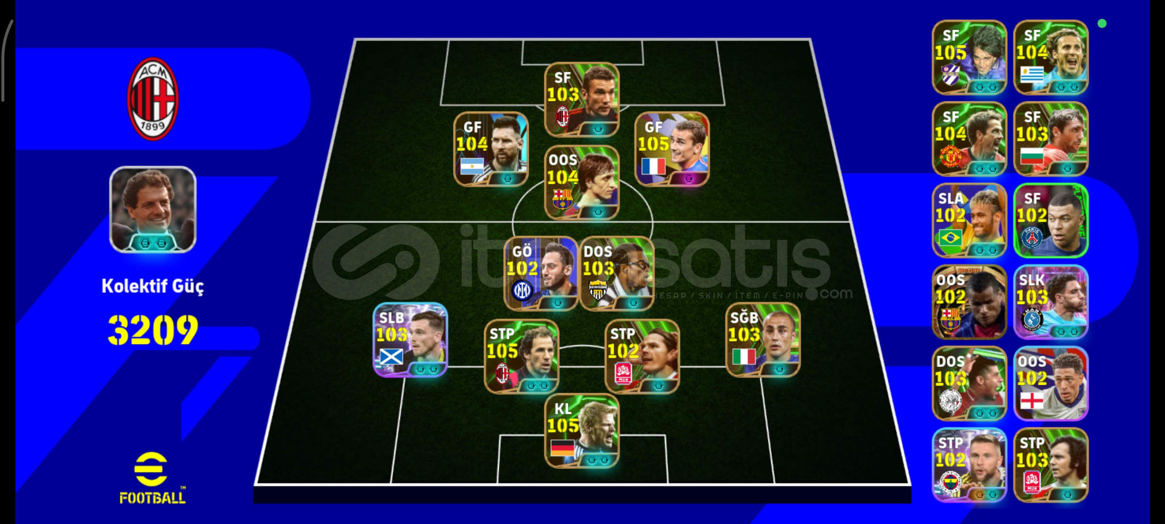 Hesapta oyunun en iyi forveti shevchenko var105 Griezmann var105 batisuta105 forlan 105 owen gibi gibi kartlar var
