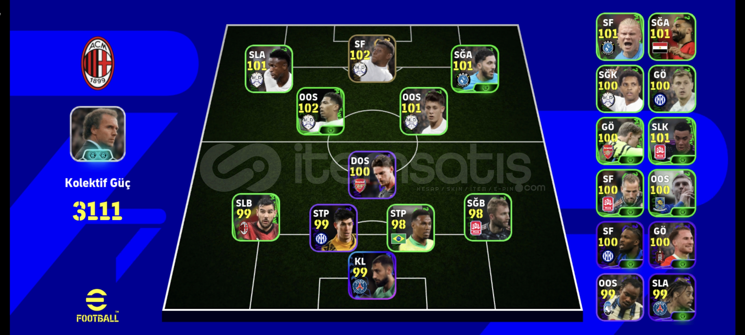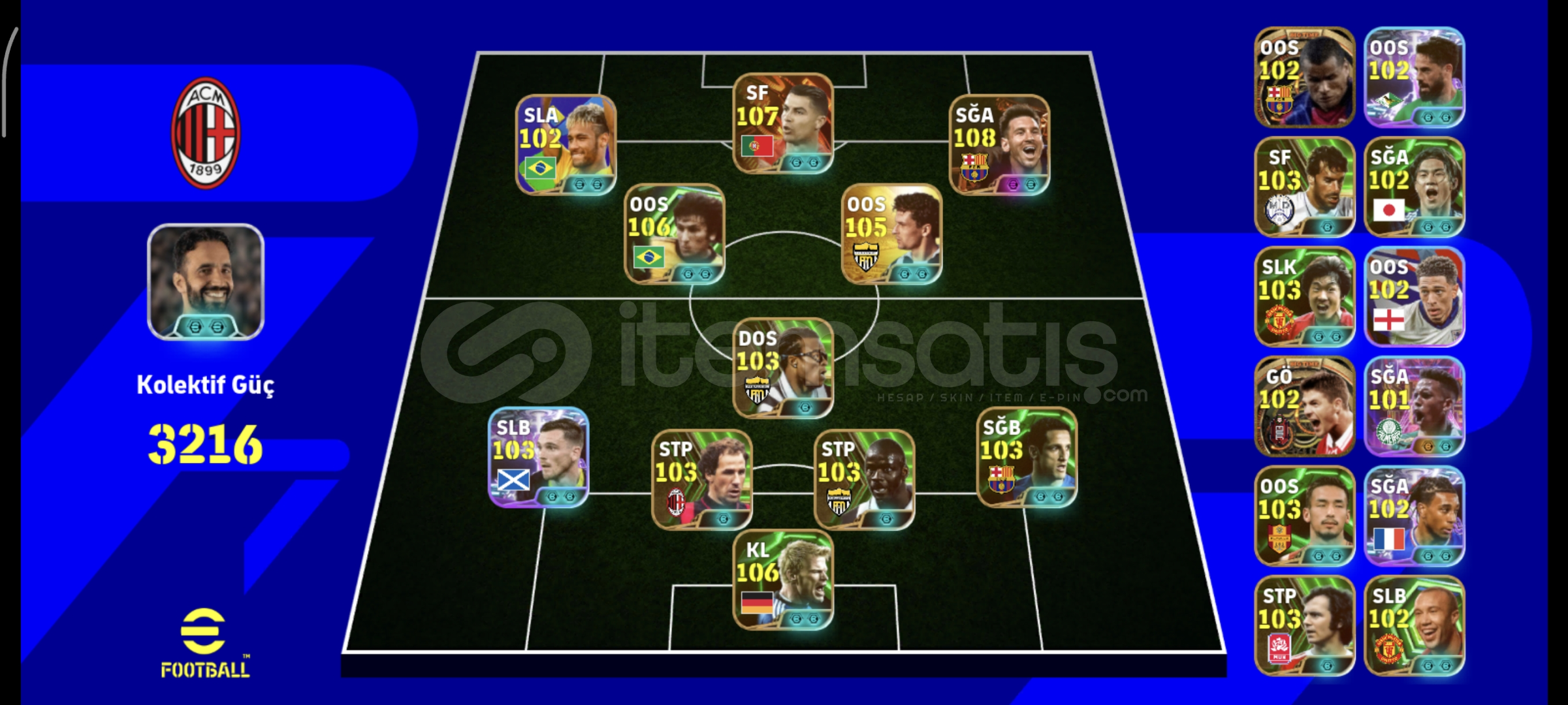 TEK BAĞ -MC YOK GİRİŞ HAKKI 33216 KOLEKTİF GÜÇ 4 BOMBACI 108 MESSİ 106 ZİCO 102 OLİSE 101 BALEDİĞER PARALİLAR 107 RONALDO 105 BAGGİO 102 JAPON 101 ESTAVAO 103 THURAM 100 FERDİ 103 BAGGİO ESKİ KART 8 TANE ÖZEL MENAJER GÜZEL POTW KADROSUSAĞLAM REZERV ÇOK İYİKLASMAN 3FIRSAT HESABI KAÇIRILMAZ