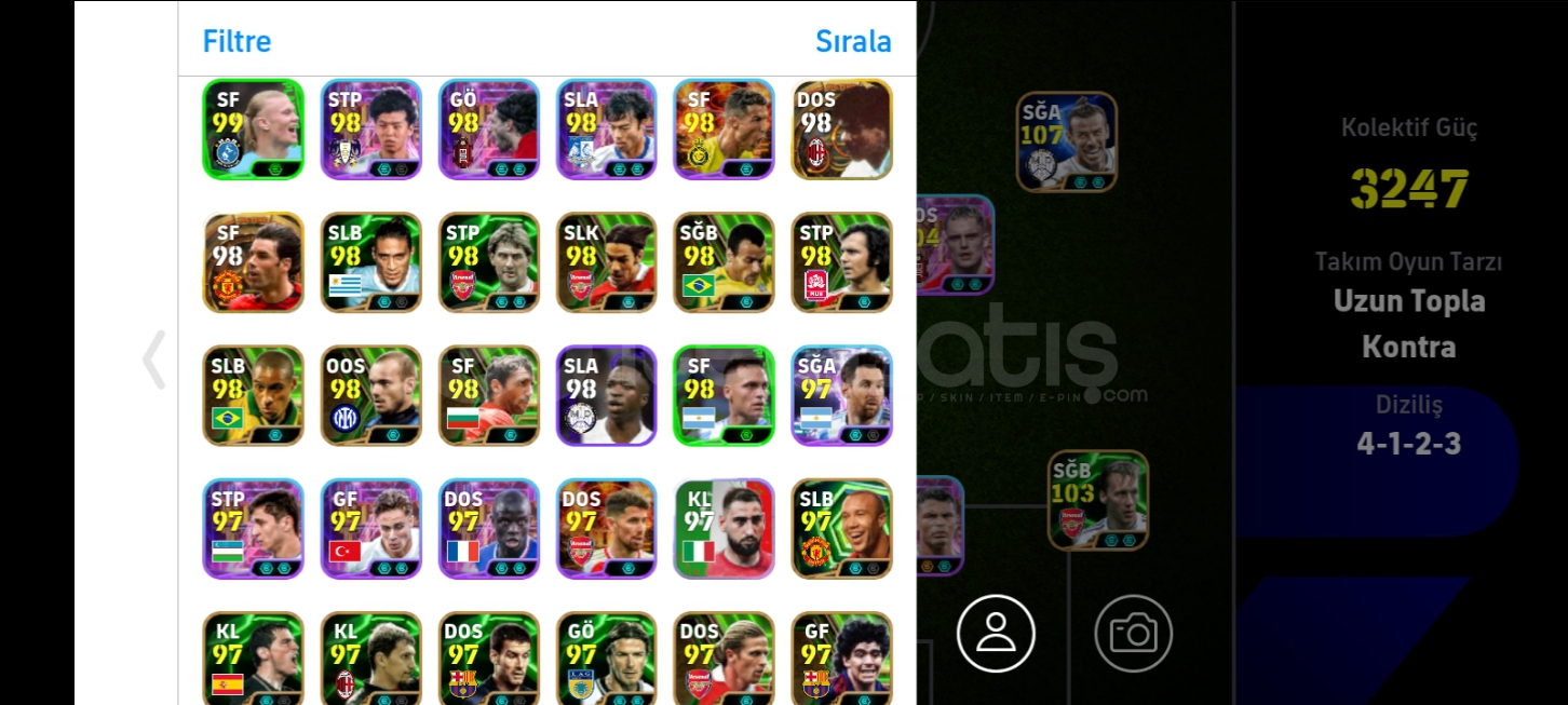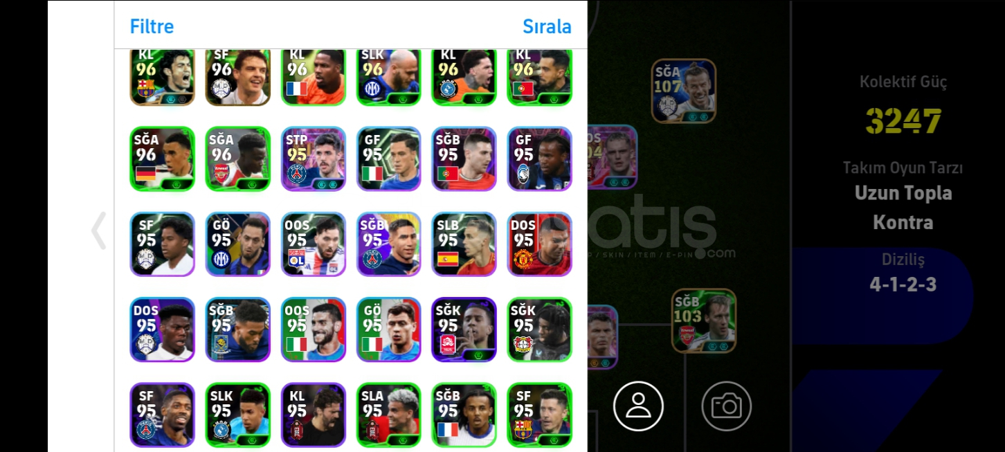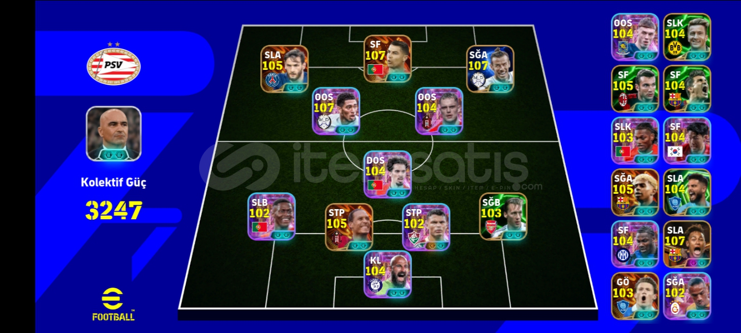 🎉 İlanımı gören herkese merhabalar 🎉💪 Hesap 3250 Kolektif Güçlü✅ Tekbağ eksi MC yoktur🔥 6 Bombacı:💣 104 D. Villa💣 104 Son💣 105 Kvaratskhelia💣 105 Yamal💣 103 Sané💣 103 Szoboszlai🐐 Oyunun en sağlam forvetleri:✨ 107 Ronaldo 🐐👑 106 Shevchenko 👑⚡ Ve dahası... ⚡🚀 Hızlı Teslimat 🚀...