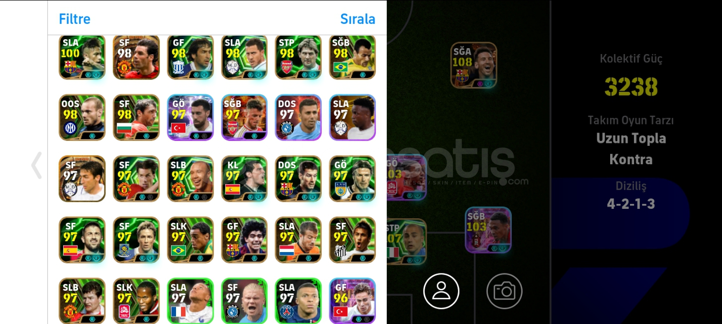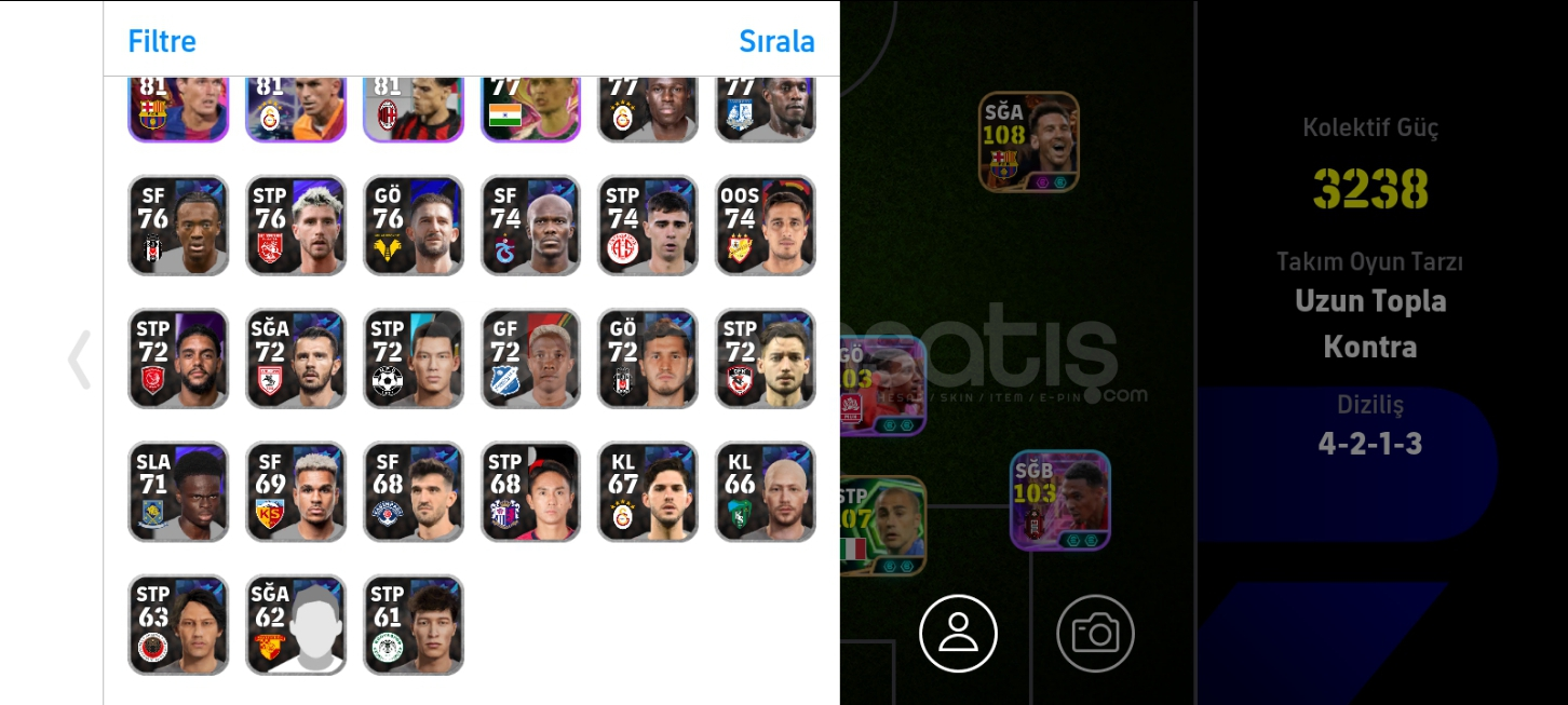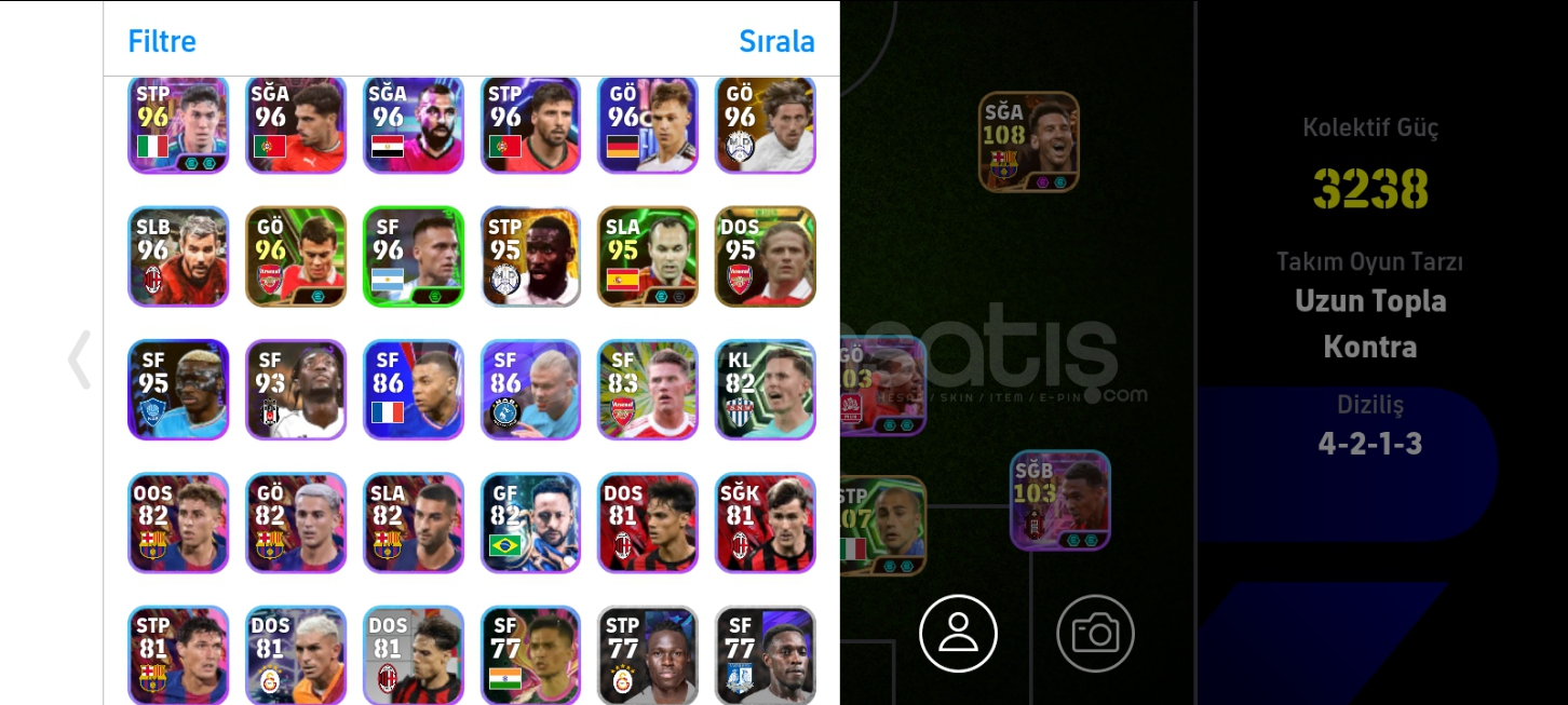 İlanımı gören herkese merhabaHesabı ios Android tekbağMax 3240 kolektif güçSağlam 2 bombacı💣 Delpiero💣 MessiMSN fullVe daha efsane kartlarHızlı teslimat