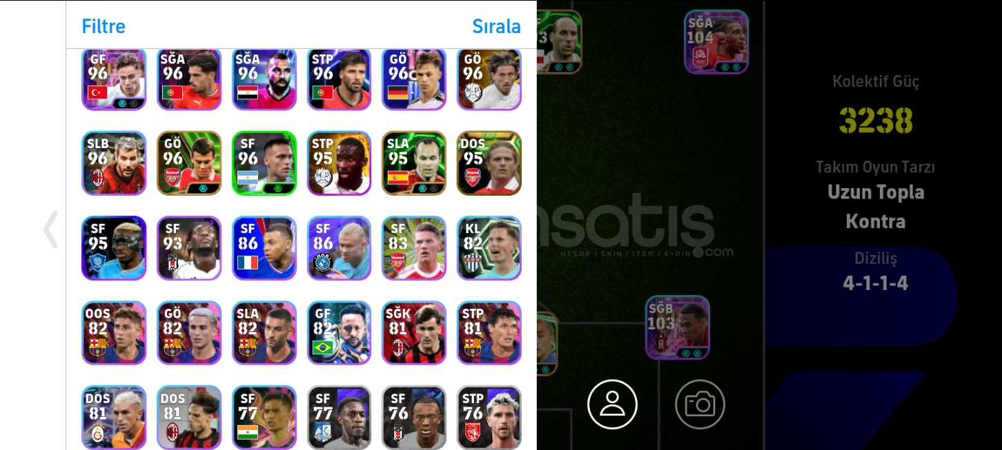 İlanımı gören herkese merhaba Hesabı ios Android tekbağ Max 3250 kolektif güç Sağlam 2 bombacı 💣 Delpiero 💣 Messi MSN full Ve daha efsane kartlar Hızlı teslimat