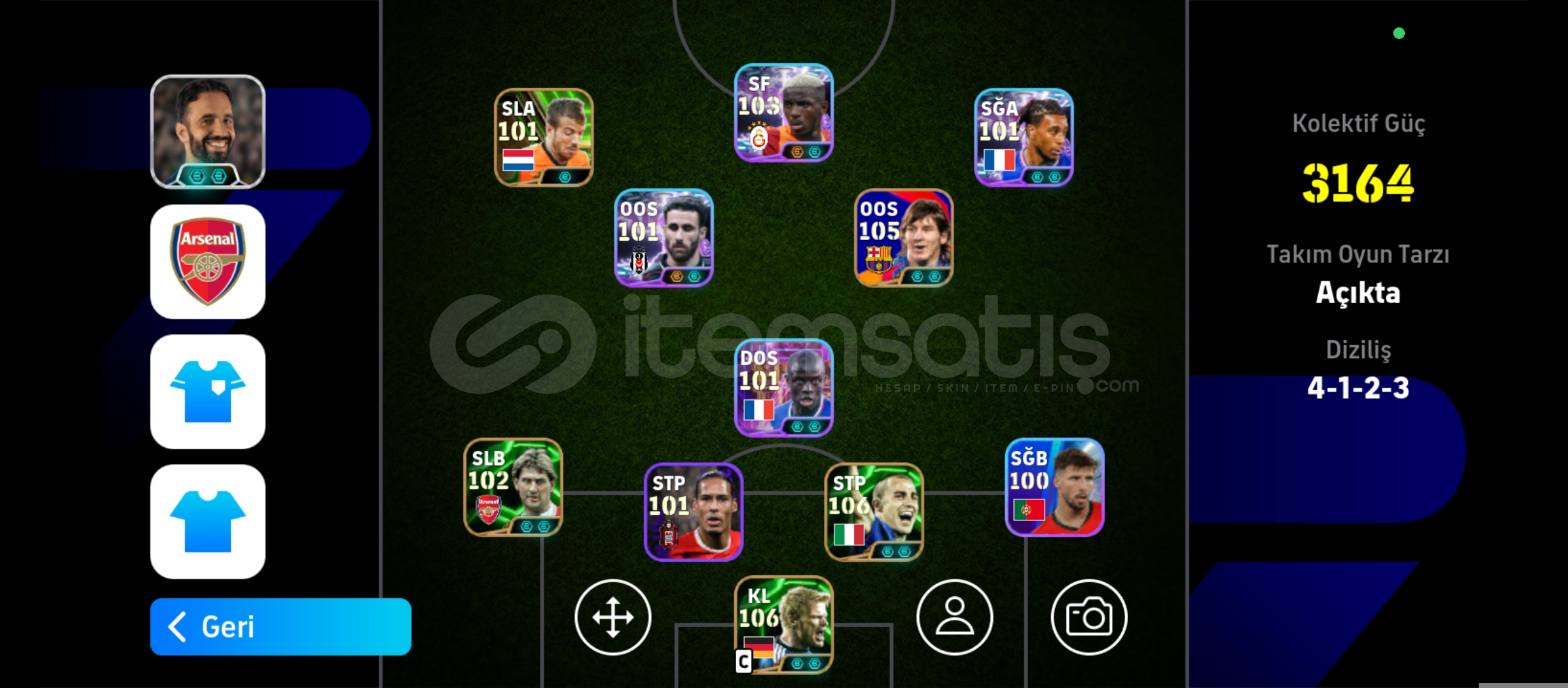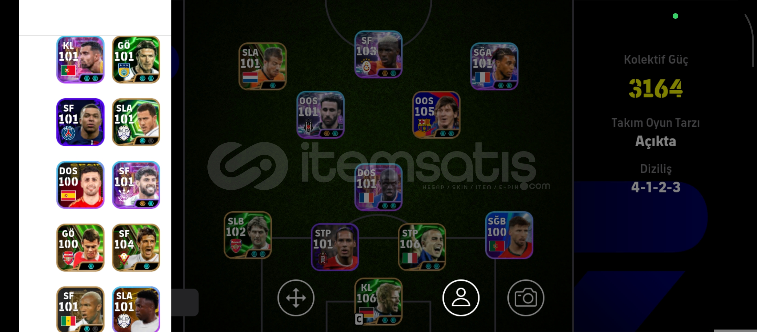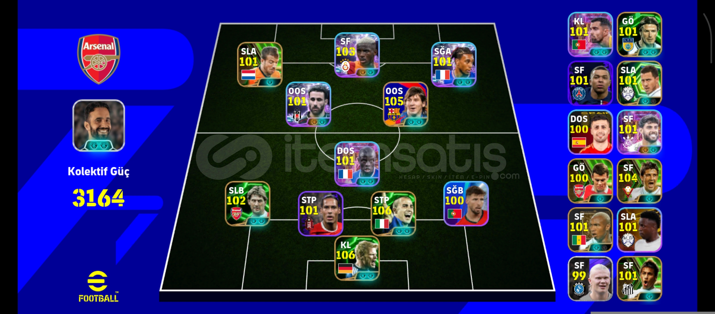 106 OLİVER KAHN. 106 CANNAVARO. 103 OSİMHEN 105 MESSİ. 101 RAFA SİLVA 102 OLİSE