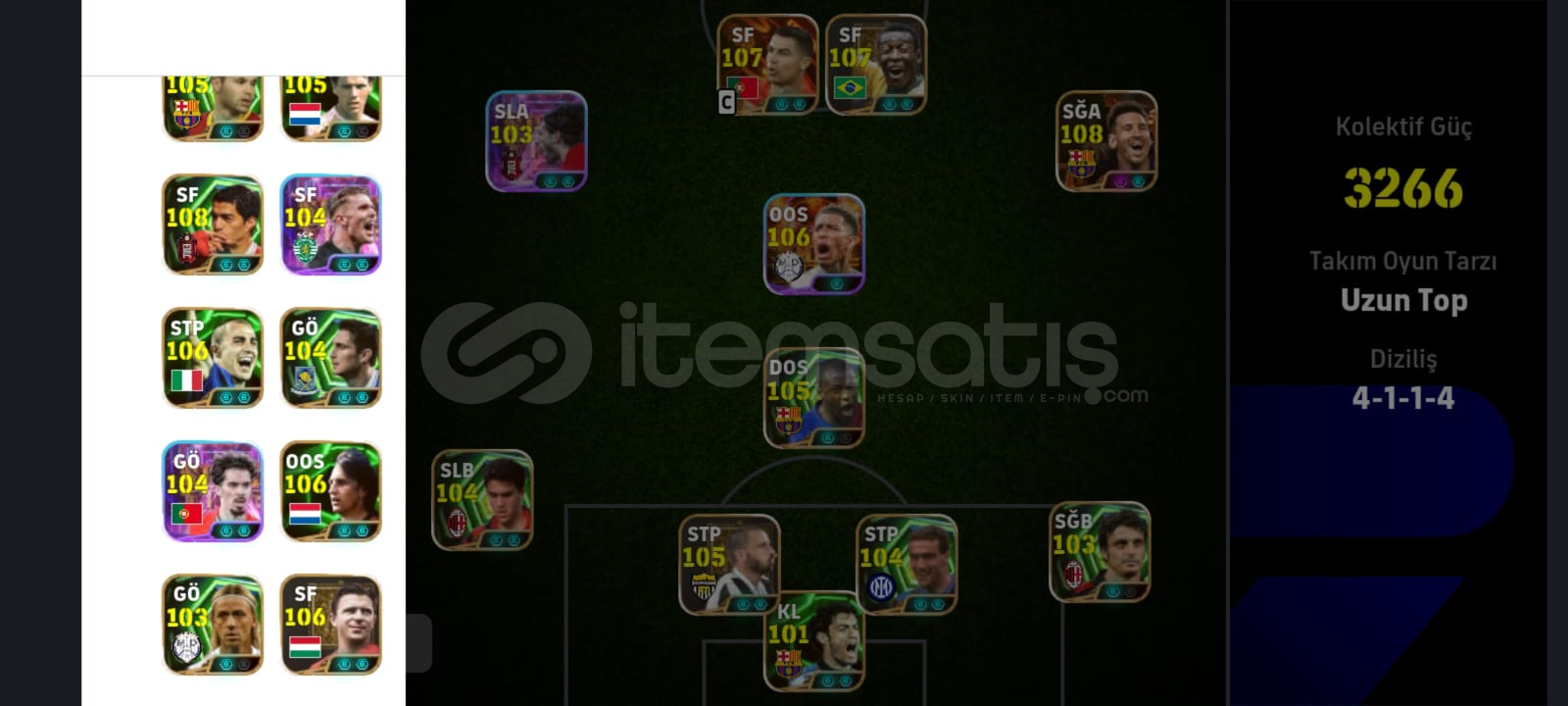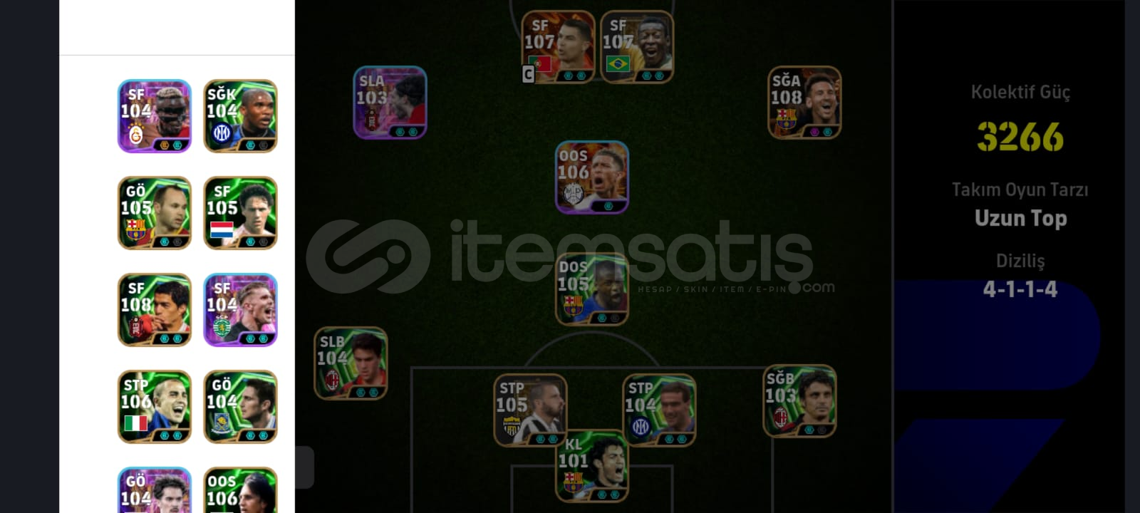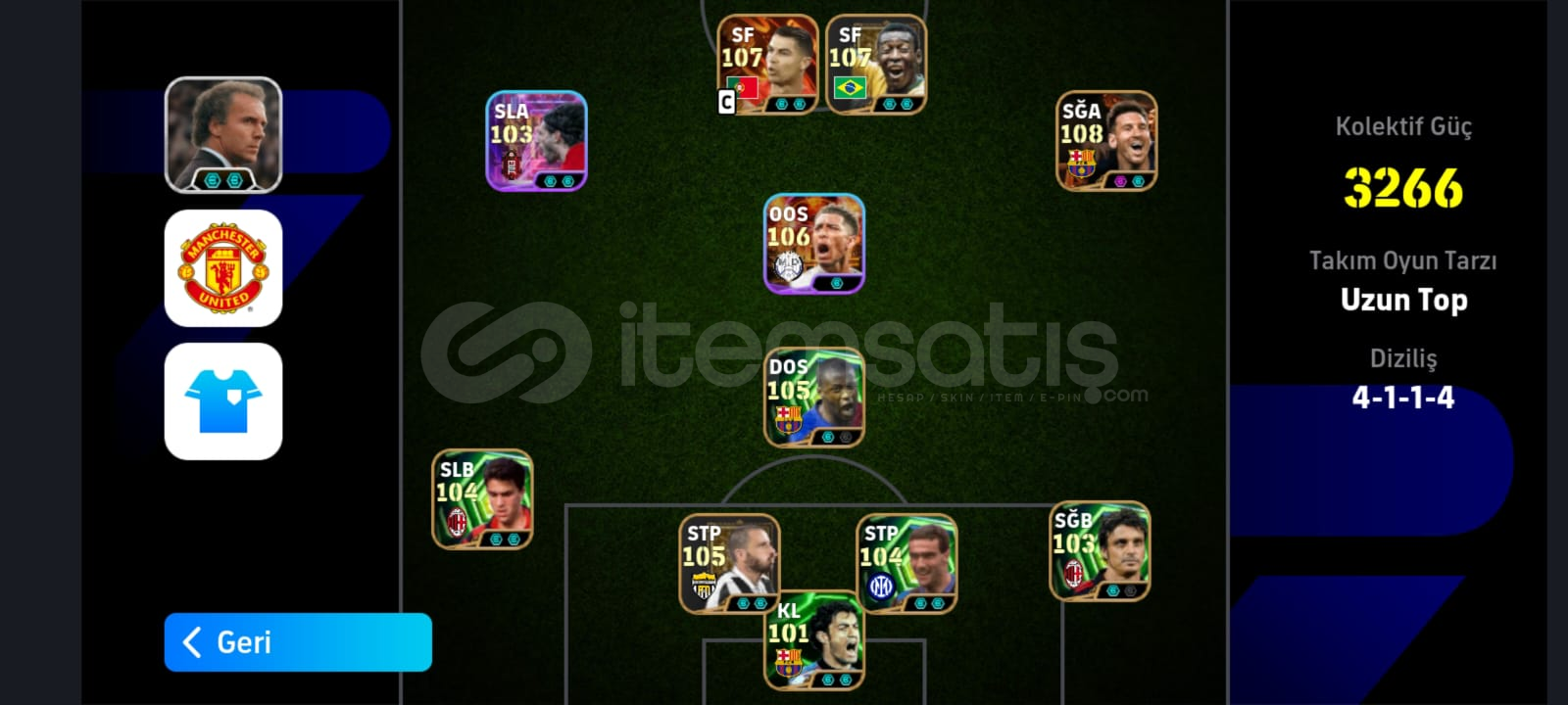 Hesap Türü: Efsanevi / Koleksiyonluk HesapDurum: Mail devredilebilir, Konami ID sorunsuz, temiz hesap.​👑 HESABIN ZİRVESİ (HÜCUM HATTI):Bu hesapta sıradan oyuncular yok, oyunun en yüksek reytinglerine ulaşmış canavarlar var!​💎 108 Reyting PELE (Epic/Boosterlı - Nadir)​💎 108 Reyting L. MESSI (Big Time - Nadir)​💎 108 Reyting L. SUAREZ (Özel Kart - Bitiricilik Makinesi)​💎...