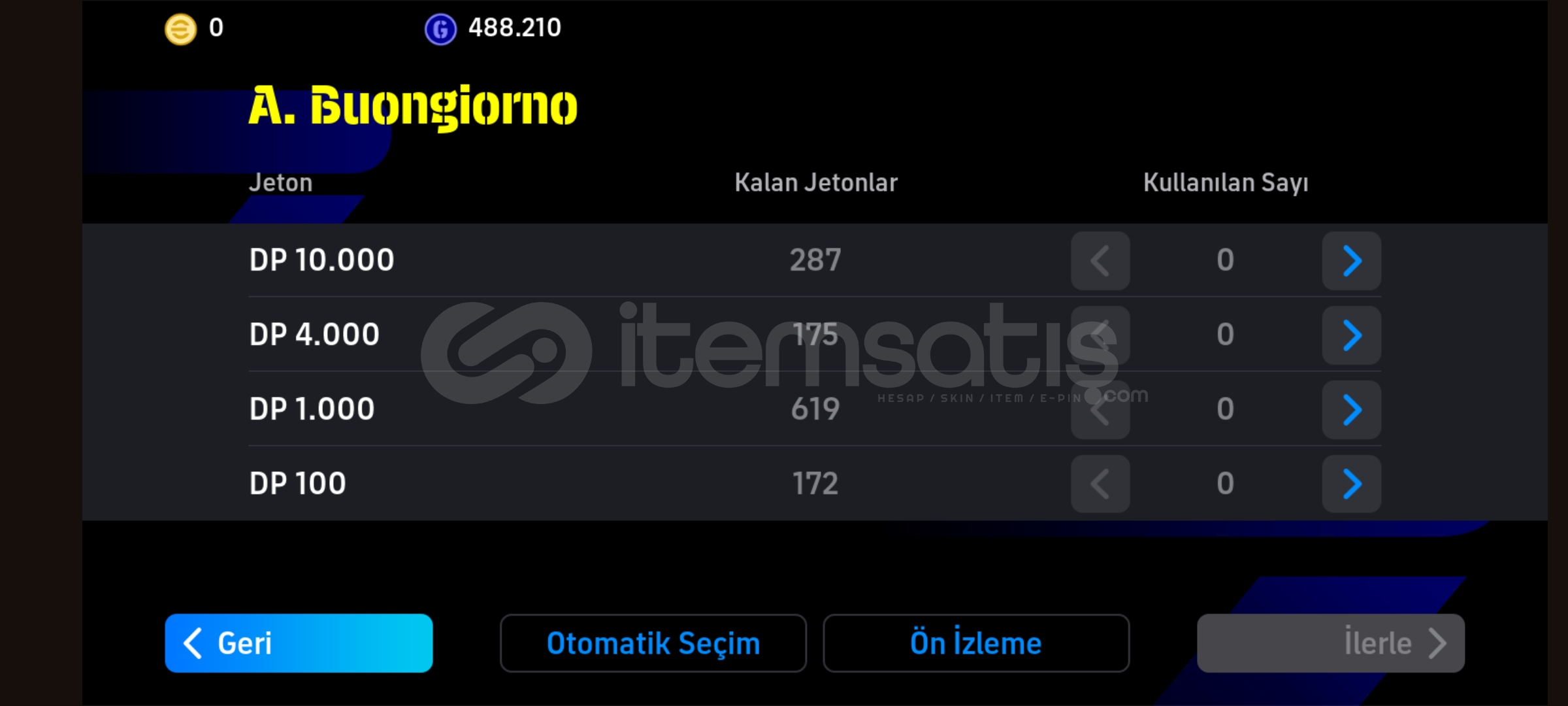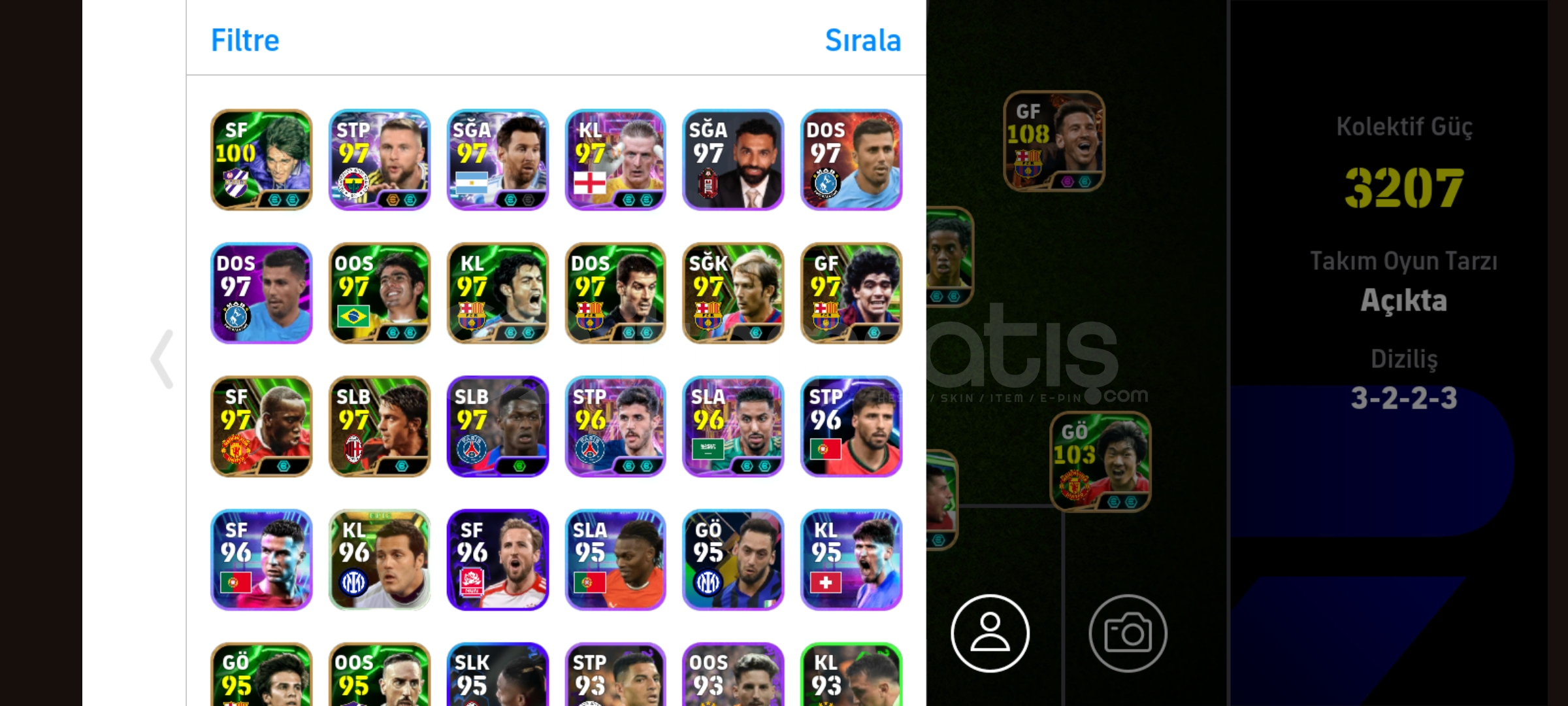 108 Bombacı Messi105 Bombacı Kvaratskhelia105 Sneijder104 Ronaldinho104 Hounes106 Cannavaro2 Tane 105 BatistutaKolektif güç 3207Klasman 33 BombacıFiyatına göre mükemmel hesap