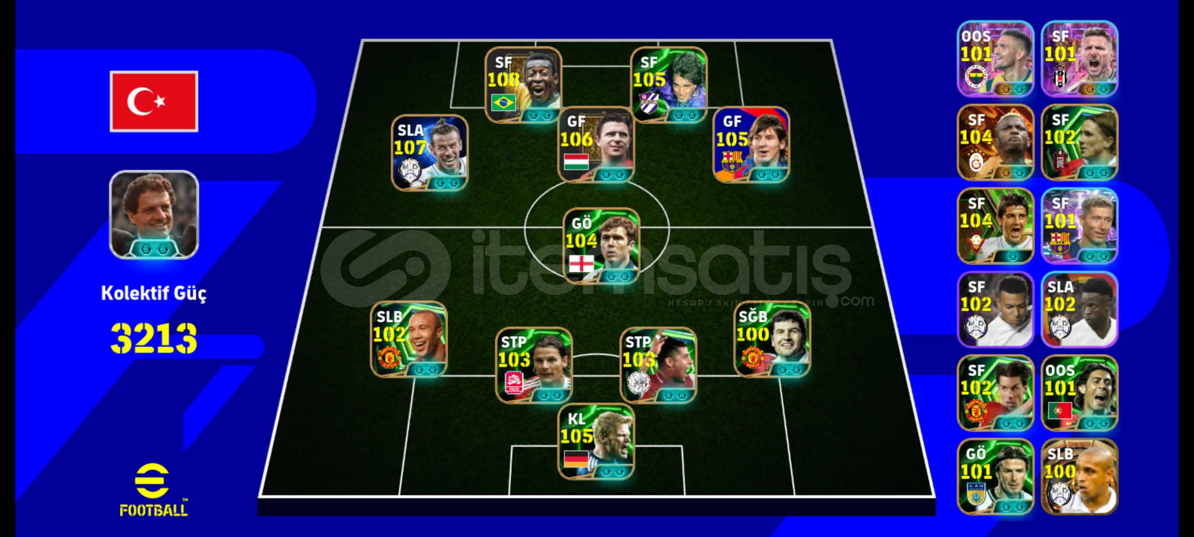 İLK 11 108 PELE (SF) 107 BALE (SLA) 106 Ferenc (GF) 105 Batistuta (SF) 105 Messi (GF) 104 paul scholes (GÖ) 100 denis (SĞB) 103 frank rijkaard (STP) 103 Daniel (STP) 102 Mikael silvestre (SLB) 105 Kahn (kale) YEDEK101 Dušan Tadić (OOS)101 Immobile (SF)104 Osimhen (SF)102 Torres (SF)104 David Villa (SF)101 Lewandowski (SF)102 Mbappe (SF)102 V.Junior (SLA)102 R.V...