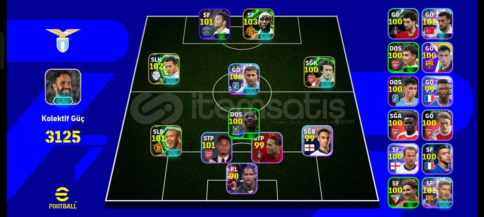 tek bağdır106 rodri103 cole102 hazard101 slivestri101 leva100 rosicky