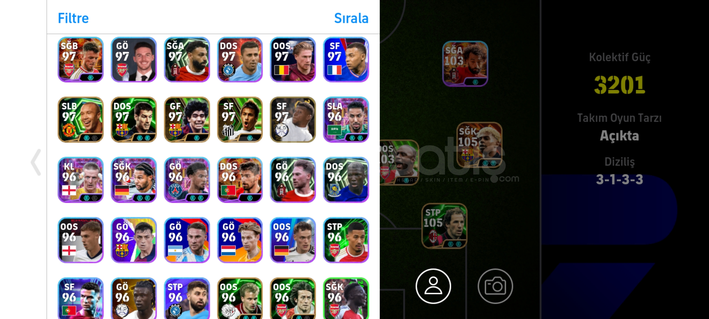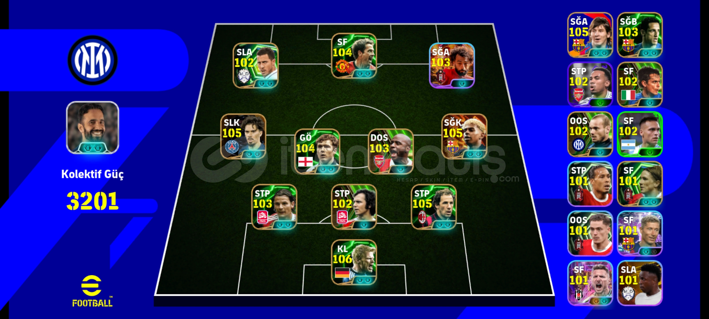 106 KAHN 105 YAMAL (BOMBACI) 105 VİTİNHA 105 BARESİ105 MESSİ 104 SCHOLES 104 OWEN 103 VİERA103 SALAH (BOMBACI) 103 VAN BUYTEN 103 BELLETTİ 102 İNZAGHİ 101 İMMOBİLE 101 VAN DİJK 101 WİRTZ İOS - ANDROİD TEK BAĞ