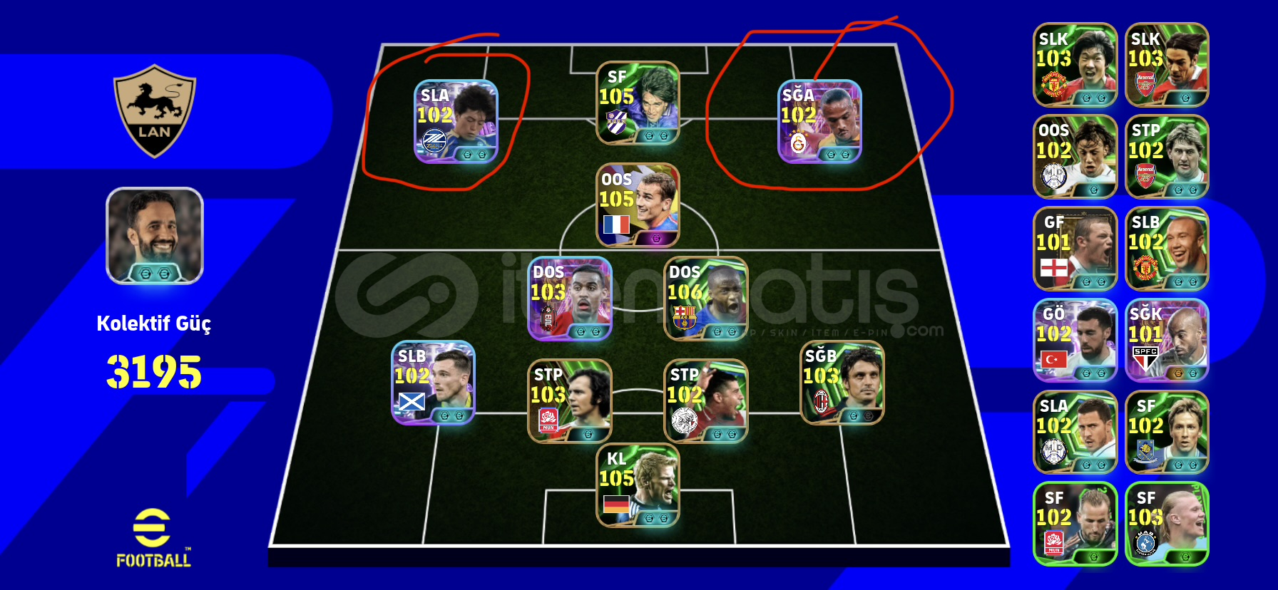 102 sane (bombacı)102 yuki Soma (bombacı)100 Burak Yılmaz (bombacı)106 yaya ture105 grizman105 oliver kahn105 batusta103 oddo103 gravenberk103 robet pires103 park in songhesap tek bağ sorunsuz alana hayırlı olsun 102 robetson