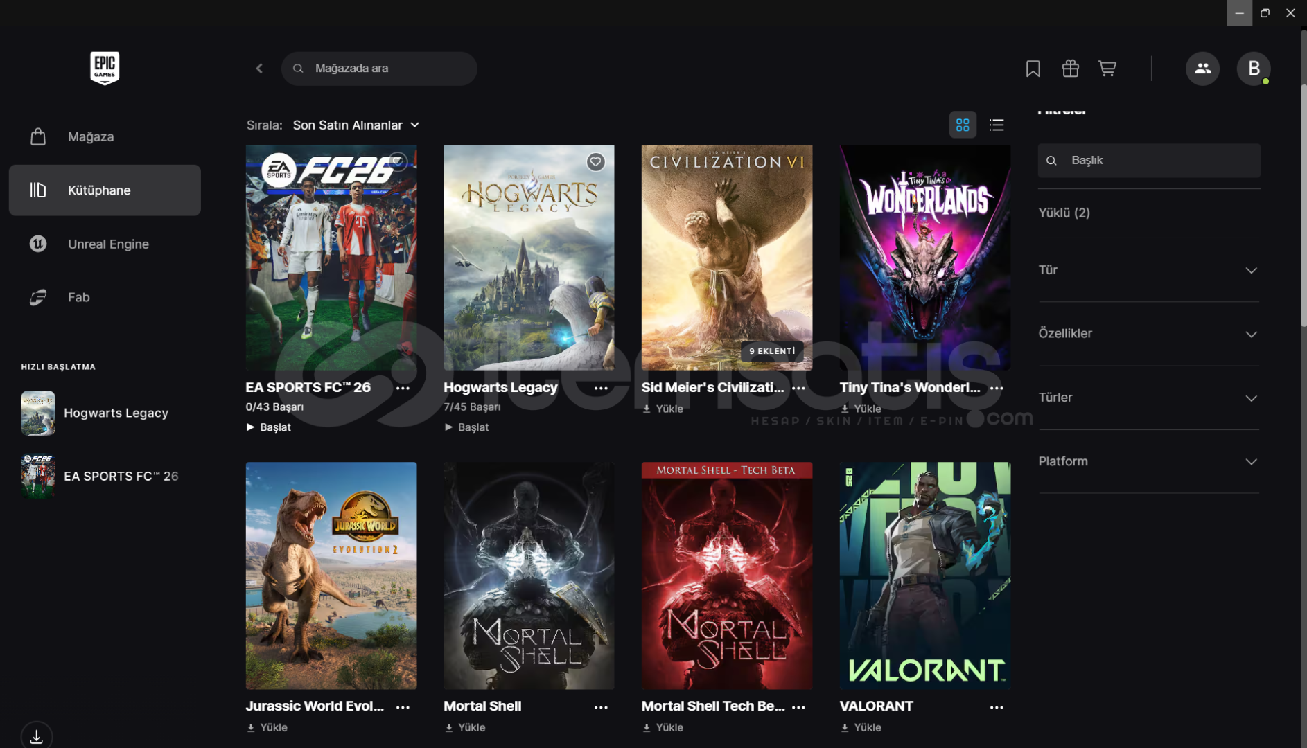 ✅ Tüm oyunlar Epic Games kütüphanesinde kayıtlıdır