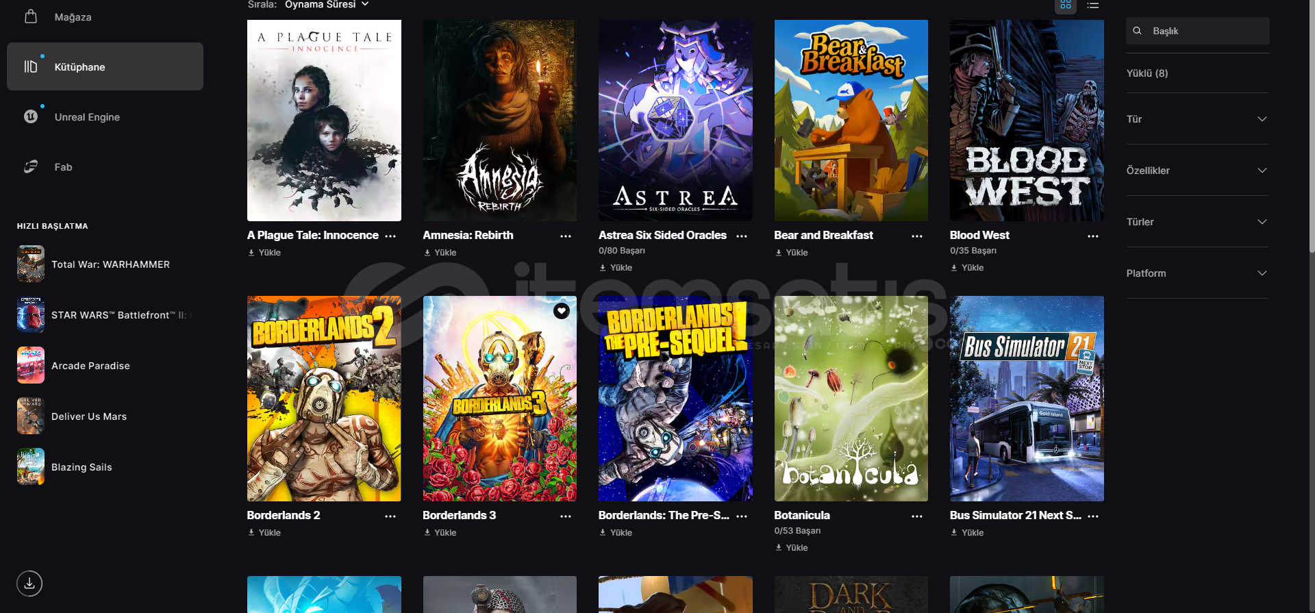 • Aksiyon, RPG, FPS, strateji, simülasyon, korku, soulslike, indie ve daha fazlası