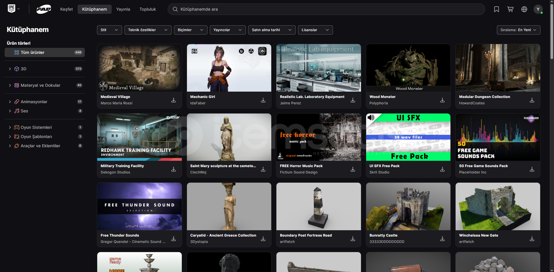 • Bir kısmı ücretli, bir kısmı ücretsiz assetlerden oluşmaktadır