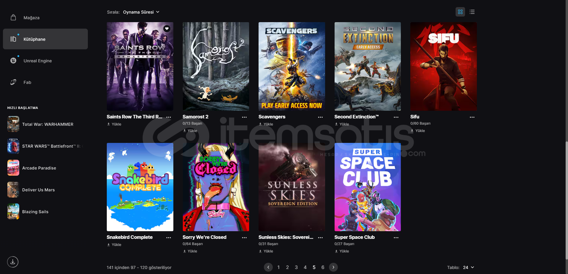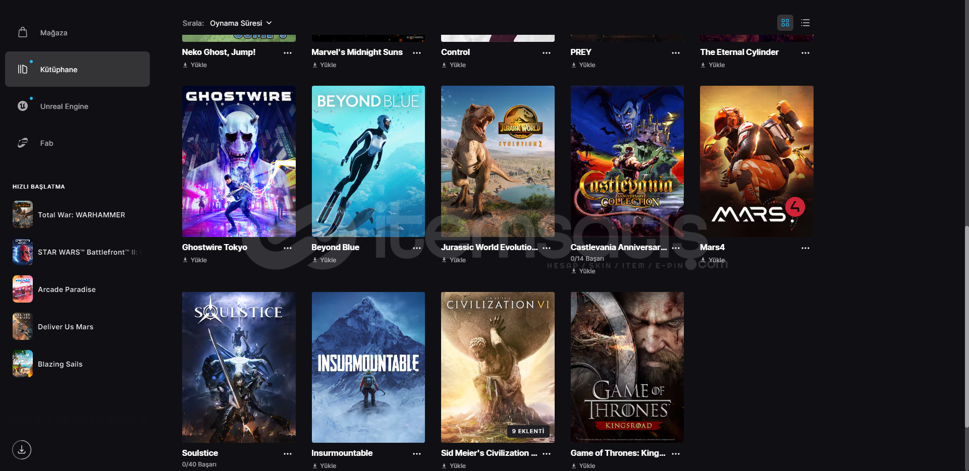 Satılık çok kapsamlı bir dijital koleksiyon.🎮 Oyun KoleksiyonuToplam 127 adet oyunİçerik:AAA yapımlar (Hogwarts Legacy, GTA V, Civilization VI, Borderlands serisi, Death Stranding, NBA 2K21,Dying Light,vb.)AA & Indie oyunlar (Vampire Survivors, Limbo, Botanicula, Wizard of Legend, Paradise Killer, vb.)Tür çeşitliliği:Aksiyon, RPG, FPS, strateji, simülasyon, korku, soulslike, indie ve daha fazlasıHem yüksek bü...