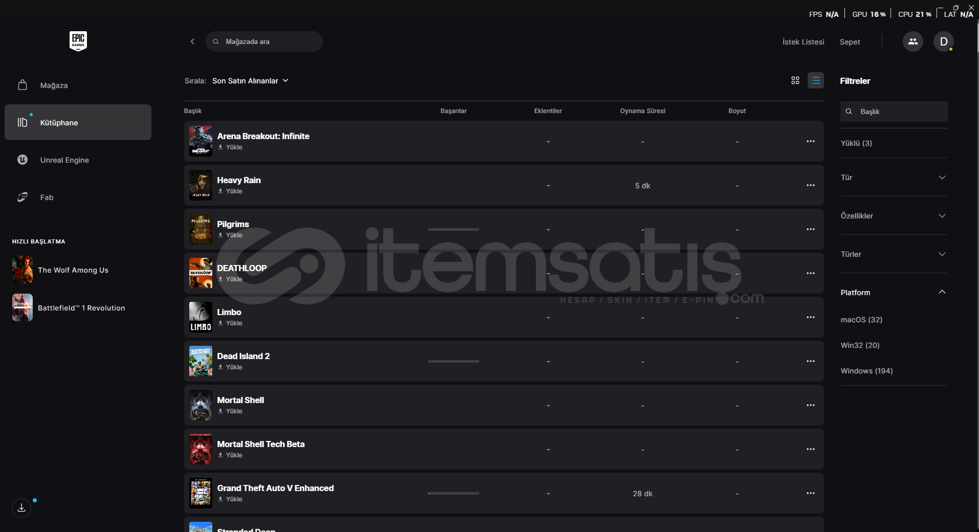 194 Oyunlu Epic Games Hesabı Dolu Dolu Hesap