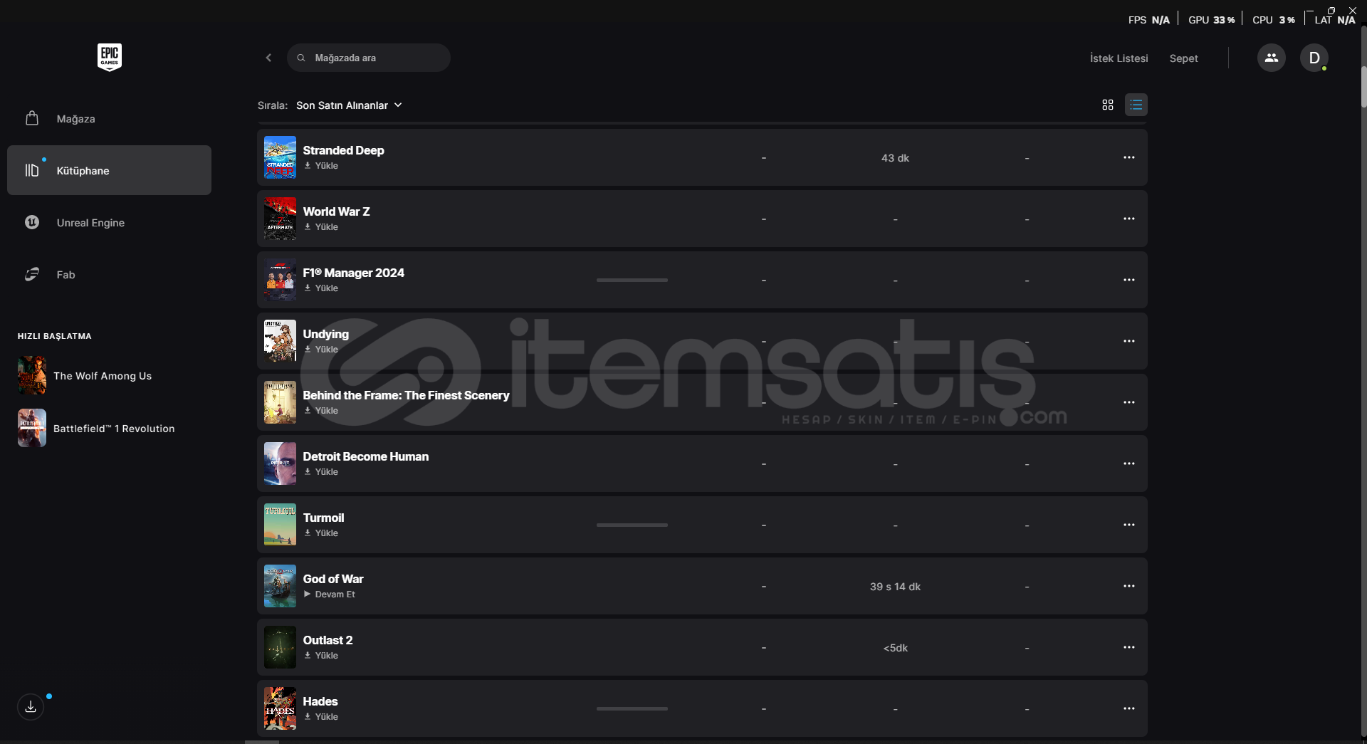 Arkadaşlar hesap dolu doludur ucuza bırakıyorum alan arkadaşa hayırlı olsun hesaptaki bazı değerli oyunlar şunlar görsellere sığmadığı için yazıyorum:Heavy RainDeathloopDead Island 2 GTA V World War ZF1 Manager 2024Stranded DeepMortal ShellDetroitGod of War 2018HadesOutlast 2 Hell Let Loose Kingdom Come DeliverinceSifuGhostrunner 2 Metro ExodusPayday 3 Batman Arkham KnightBatman Arkham CityAlan WakeMafia 1,2,...