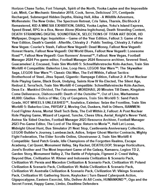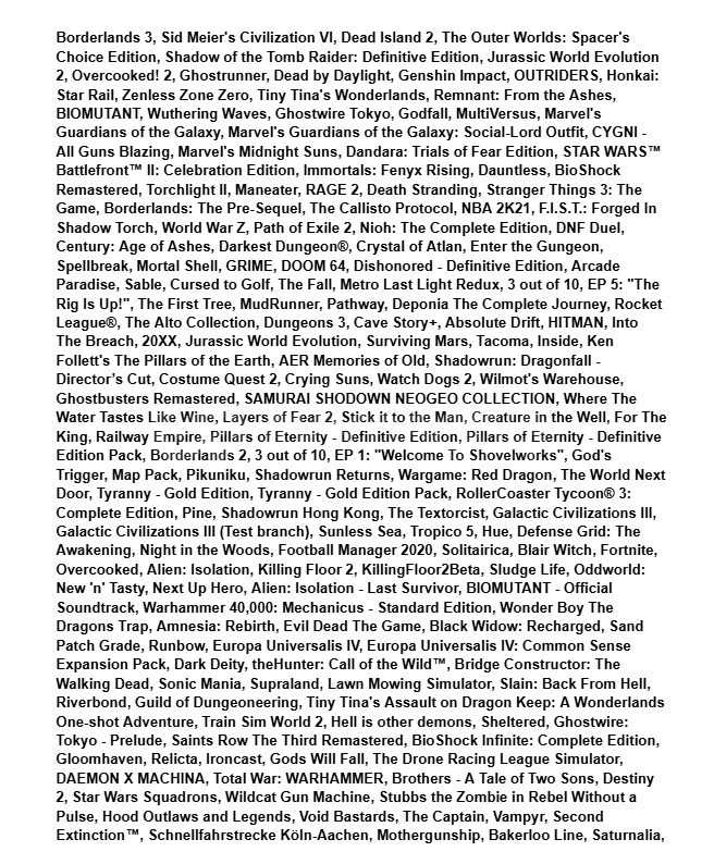 331 OYUNLU EPIC GAMES HESABI✅1 adet hesap teslim edilecektir (en gec 24 saat icinde)❌MAIL degistirilemez❌Social Club baglidir✅Oyunlari online/offline oynayabilirsiniz / tamamen parasi odenip satin alinmistir✅Hesabin icinde ek olarak bakiye gelebilir (sansa bagli)✅Hesap 2018 tarihinde acilmistirPOPULER OYUNLAR👇🏻📍Grand Theft Auto V📍Grand Theft Auto V Enhanced📍Warhammer 40,000: Space Marine 2📍Warhammer 40,000: Spa...