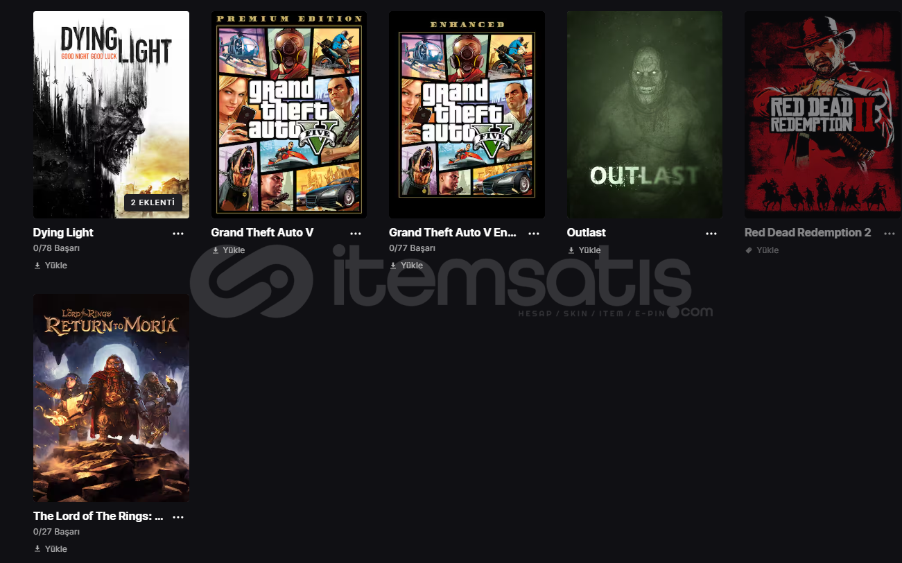 Hesaptaki oyunlar ;-Dying light-GTA V Premium edition-GTA V Enhanced-Outlast-The Lord of The Rings : Return to MoriaE posta devir edilecek iyi alışverişler dilerim