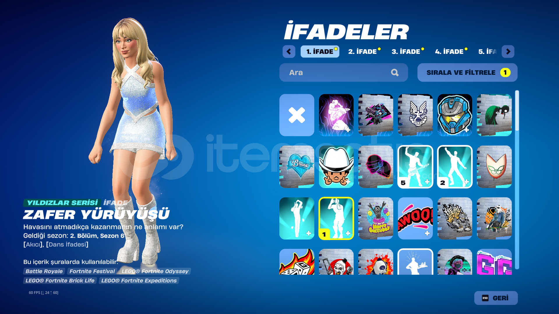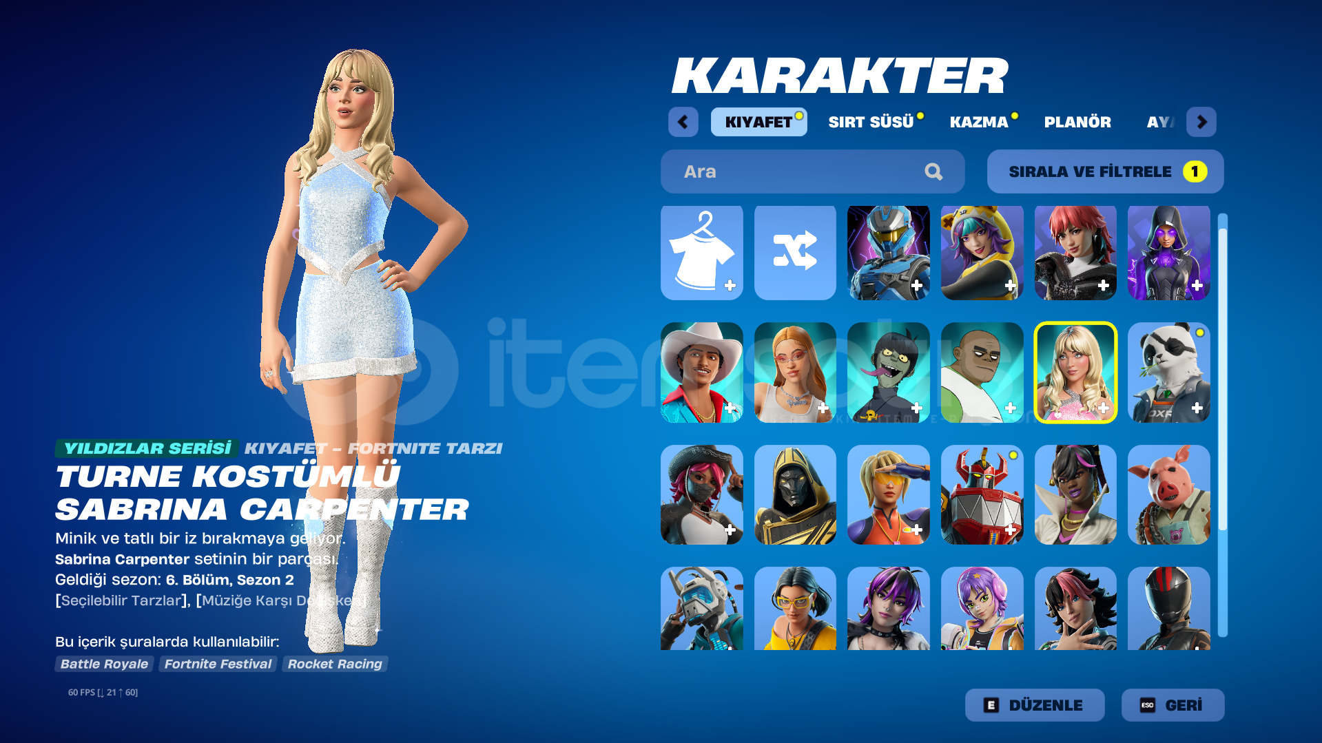 fortnite90 saat vardır fortnitedaki skinler fotografta mevcuttur