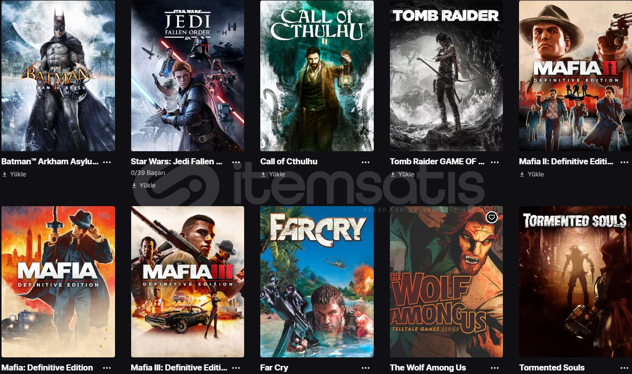 HESAP KENDİ HESABIM. PİYASA DEĞERİ 35.000DEN FAZLA İÇERDİĞİ OYUNLAR:FC24GTA 5RED DEAD REDEMPTİON 2MAFİA 1-2-3FAR CRY 1THE WOLF AMONG USTHE LONG DARKBATMAN ARKHAM ASYLUMBATMAN ARKHAM CİTYBATMAN ARKHAM KNİGHTTHE WİTCHER 3:WİLD HUNTFARMİNG SİMİLATOR 22FM24CHİVALRY 2DEAD İSLAND 2CİVİLİZATİON 6SİFUTOMB RAİDER SERİSİBİOSHOCK SERİSİMETRO SERİS...