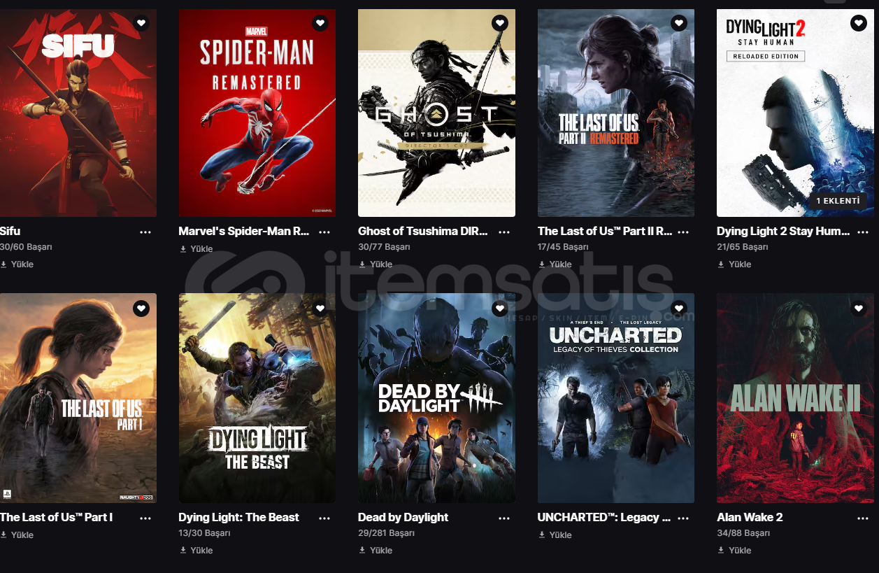 Marvel Spiderman Remastered, Marvel Spiderman Miles Morales, Ghost of Tsushima YÖNETMENİN SÜRÜMÜ, The Last Of Us Part I, The Last Of Us Part II, Dying Light The Beast, UNCHARTED™: Hırsızlar Mirası Koleksiyonu, Alan Wake 2, Dying Light 2, Dead By Daylight, Dead Island 2, The Outlast Trials,Detroit: Become Human, Control, Ghostrunner2, The Walking Dead : The Telltale Definitive Series, Mafia Definitive Edition, Shadow of the Tomb Raider, Tomb Raider,ST...