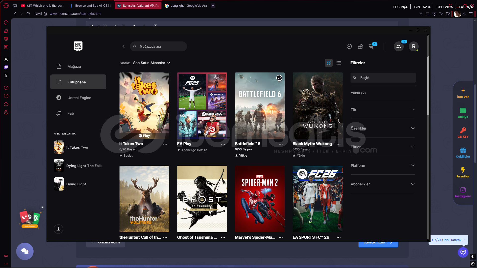 FC26 var icinde 2000fcp var Dying Light hesabı full nerdeyse içinde 170tl epic parası bulunmakta ufak bir pazarlık olur