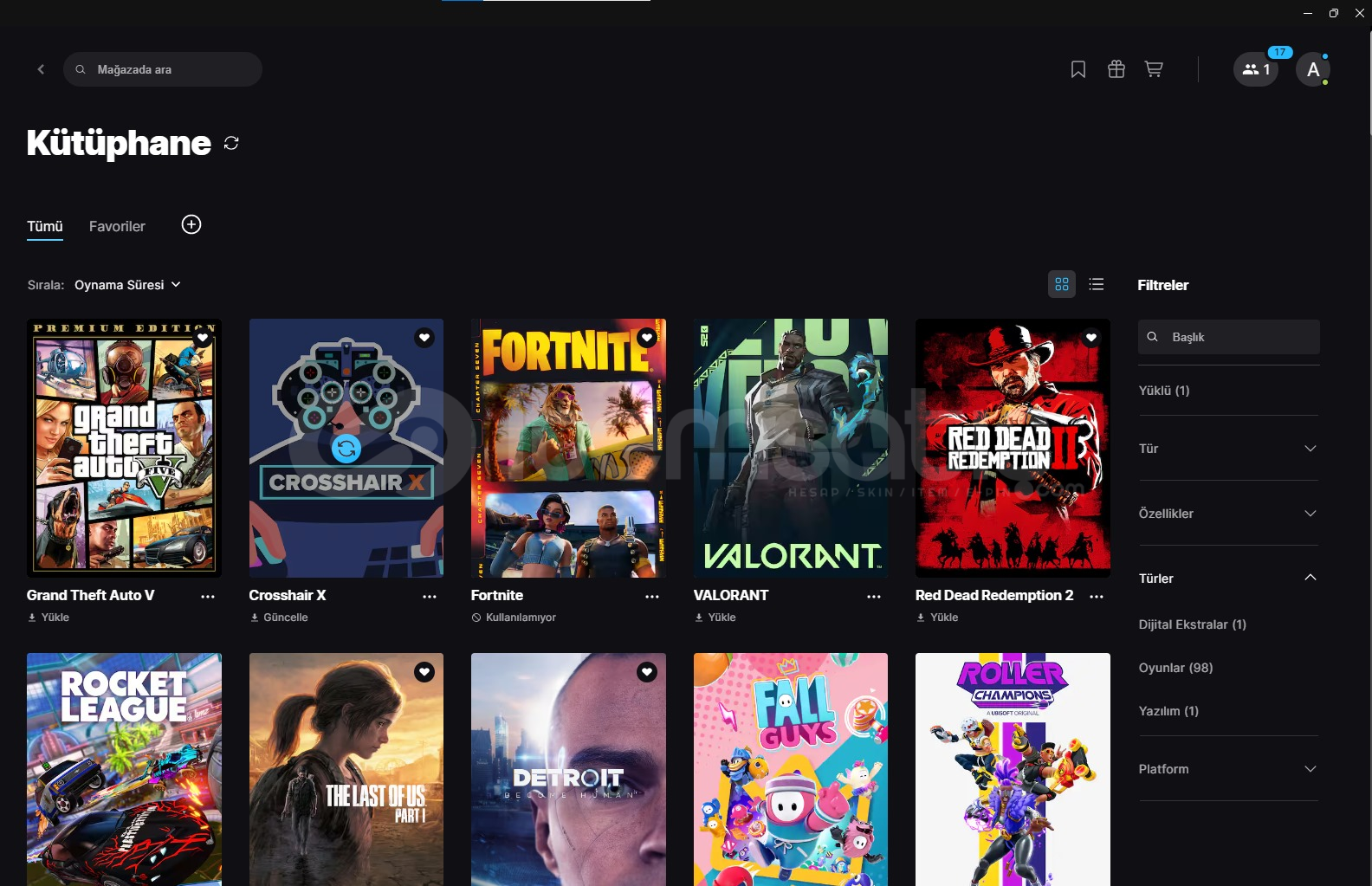 hesapta 98 oyun var fortnite da 90 tane kostum var