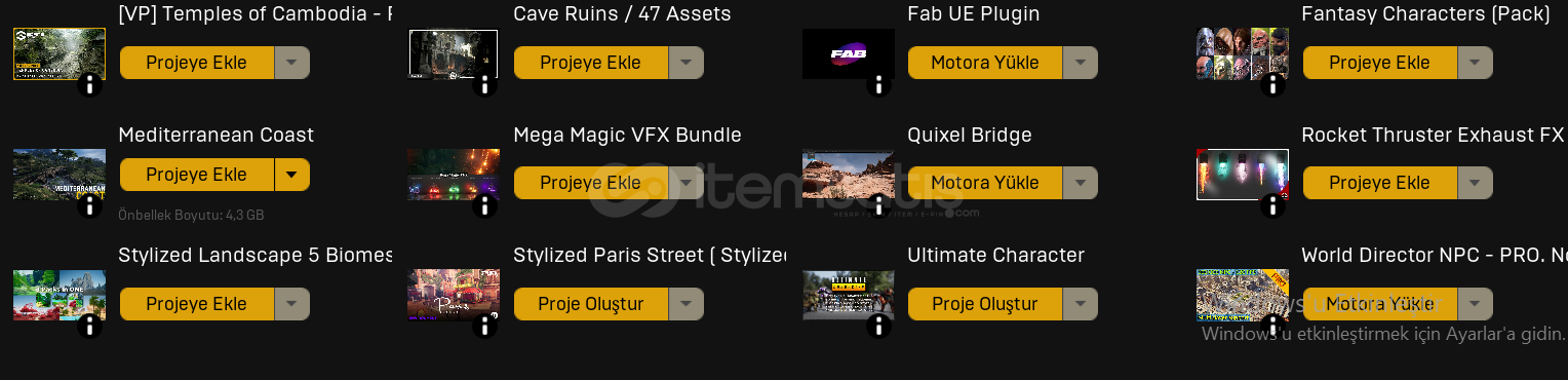 hesap ta 77 adet oyun 12 adet kişisel unreal engin oyun yapmaya yarayan hazır asetler