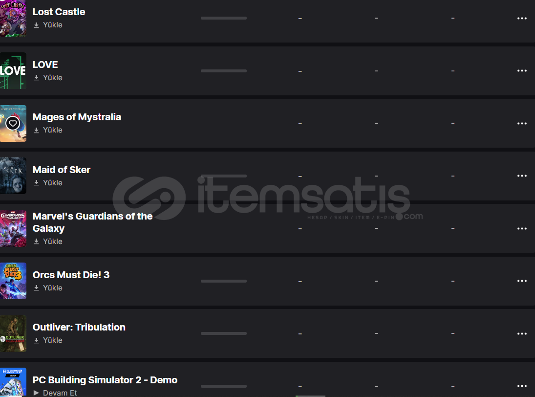 hesap ta 77 adet oyun 12 adet kişisel unreal engin oyun yapmaya yarayan hazır asetlerbazı oyunlargalaxy of the guardiyansantis rowhot w...