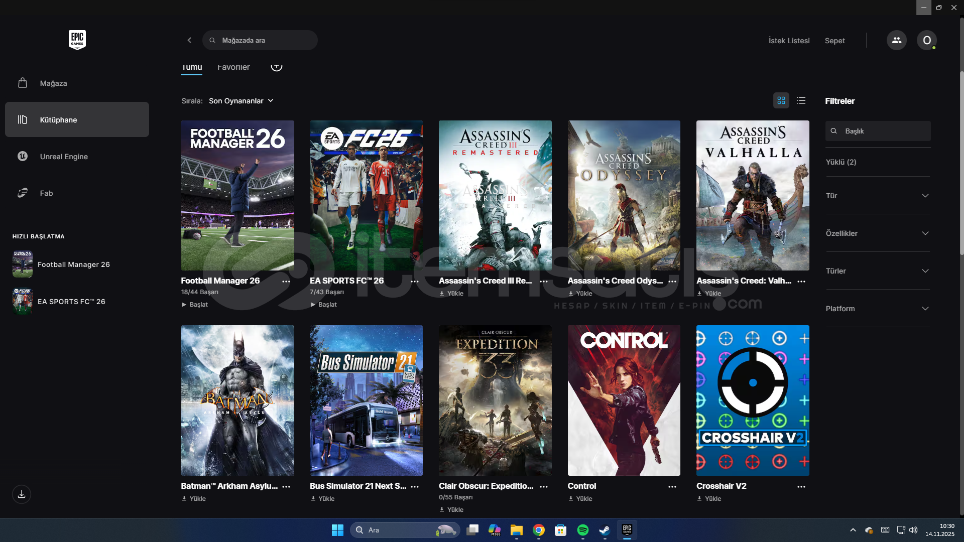 Hesapta olan oyunlar:FC26FM26GOD OF WARUNCHARTEDEXPEDİTON33ASSASİNS CREED 3,VALHALLA,ODDYSEYBATMAN ARKHAM ASYLUMCRYSİS 1,2,3MARVELS SPİDERMANTHE LAST OF USSİFUve daha fazlası bu fiyata kebap