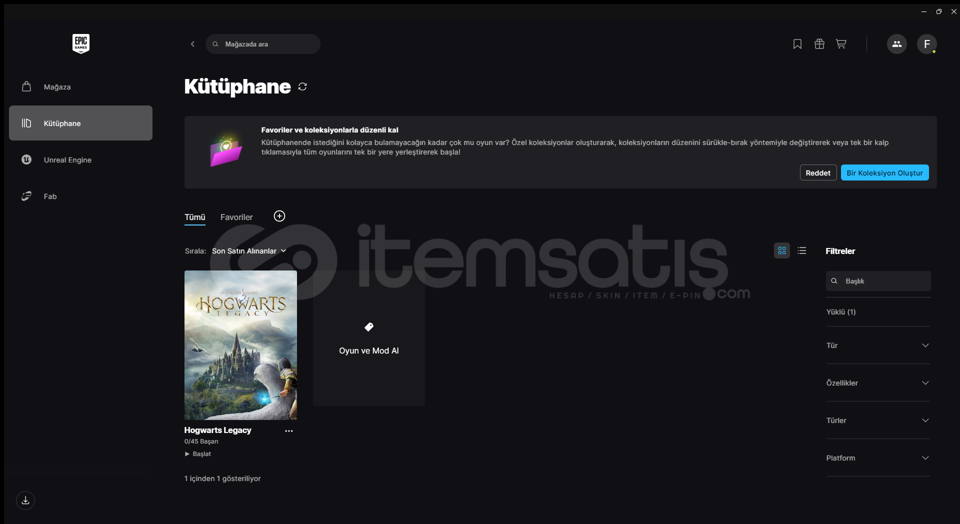 ucuza içinde Hogwars Legacy olan epic hesabı