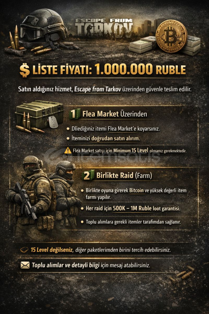 💰 LİSTE FİYATI: 1M RUBLE İÇİNDİR.📌 Satın aldığınız hizmet güvenli şekilde teslim edilir.🔹 Teslimat Seçenekleri1️⃣ Flea Market ÜzerindenDilediğiniz itemi Flea Market’e koyarsınız.Iteminizi doğrudan satın alırım.⚠️ Flea Market satışı için minimum 15 level olmanız gerekmektedir.2️⃣ Birlikte R...