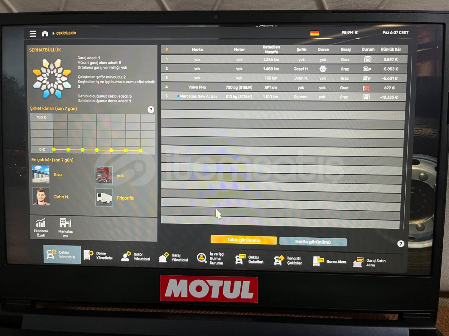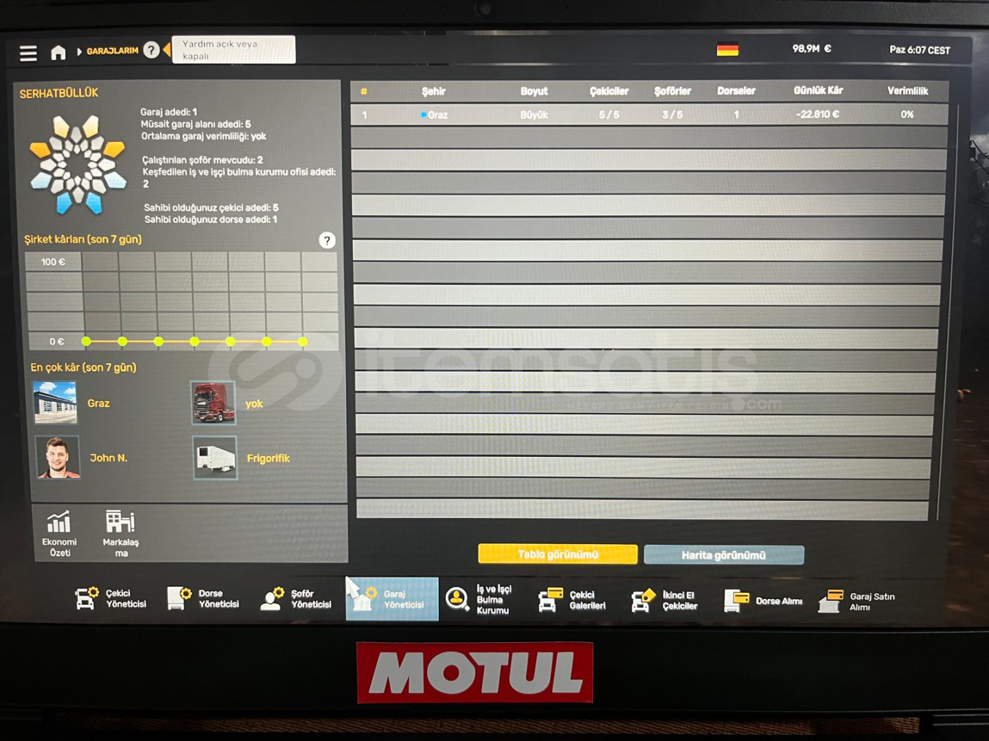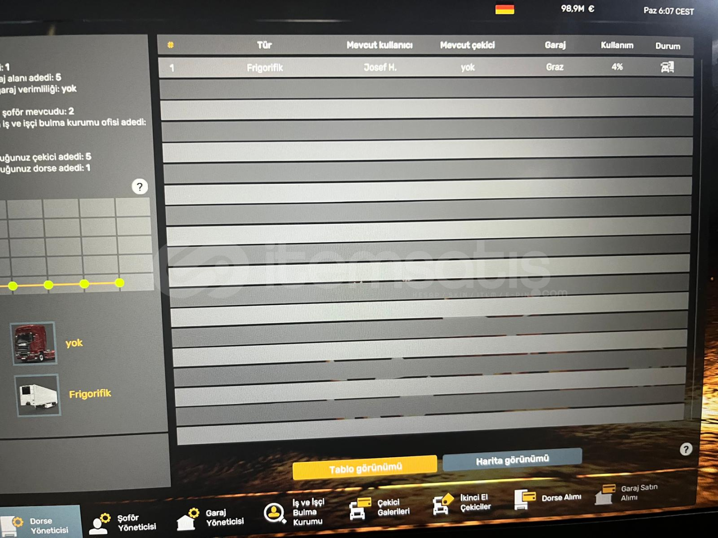 133 seviye, 99milyon euro para var, büyük garaj, 5 tır, 5 şoför
