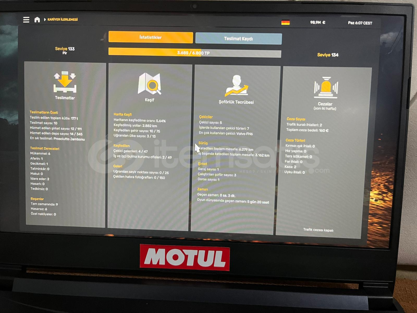 133 seviye, 99milyon euro para var, büyük garaj, 5 tır, 5 şoför STEAM HESABI İLE BİRLİKTE VERİLECEKTİR, OYUN STEAM ÜZERİNDEN PARA İLE SATIN ALINMIŞTIRPAZARLIK VARDIR