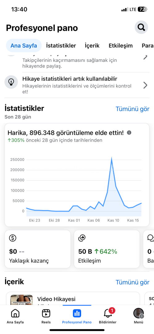 Sayfa istatistiğini ekledim şuanda 1700 civarı takipçisi mevcut hızla gelişen bir hesap.herhangi bir sorunu olmayan bir hesap.Hikayeler ortalama 5 k Gösterimler 900 kEtkileşim 50 kFotoğtaf gönderileri min 30 k görüntülenme alıyor Kaçmayacak hesap!