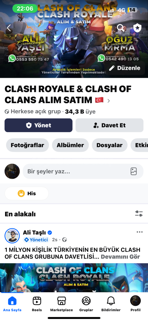 Aktif full türk grubu clash royal kitleli aktif Facebook grubu