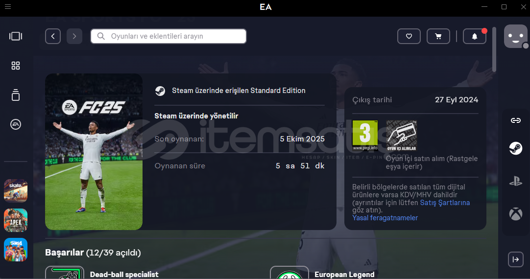 Satın aldığınızda FC25 içeren bir steam hesabı teslim edilecektir bu hesabın şifresini epostasını değiştirebilirsiniz ban yoktur online offline açıyor.
