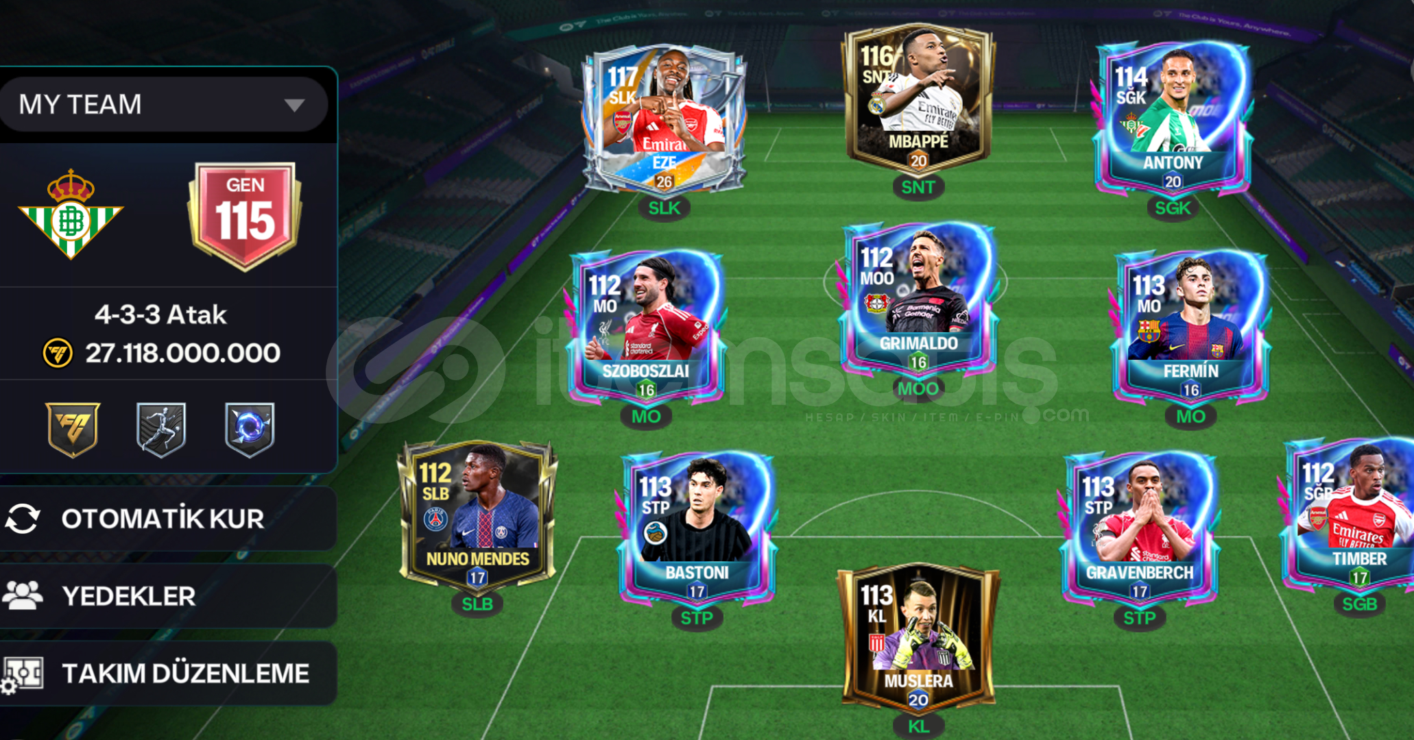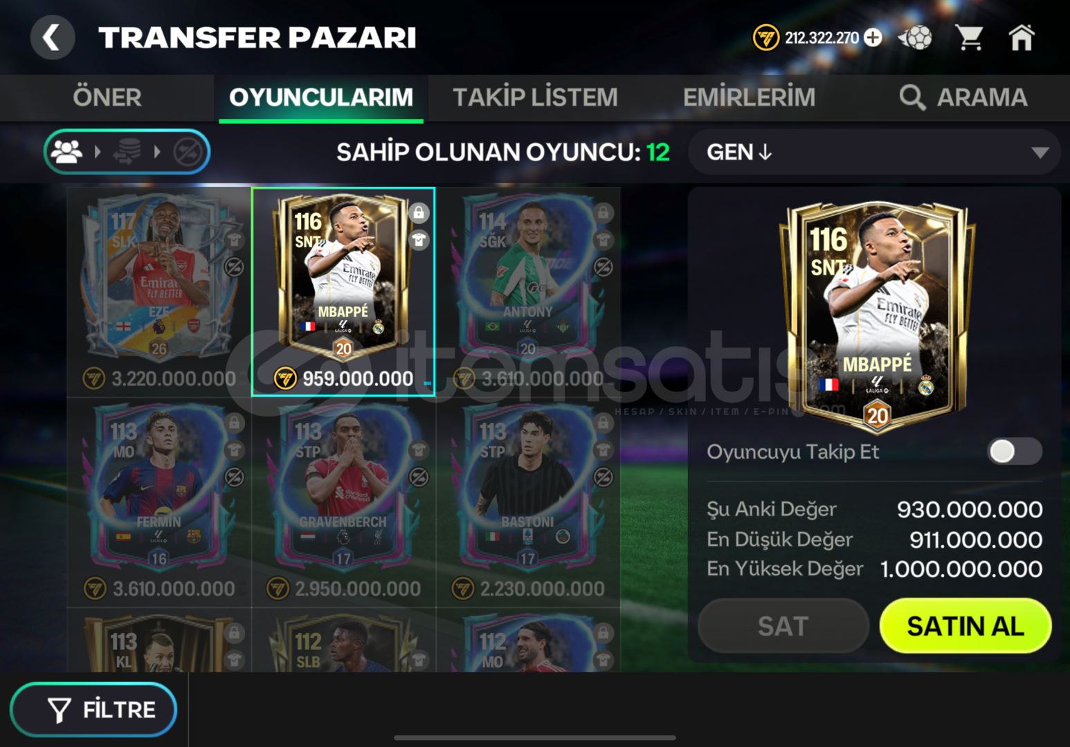 Geliştirebilir oyuncular satılabilir oyncu toplam 1200000 para