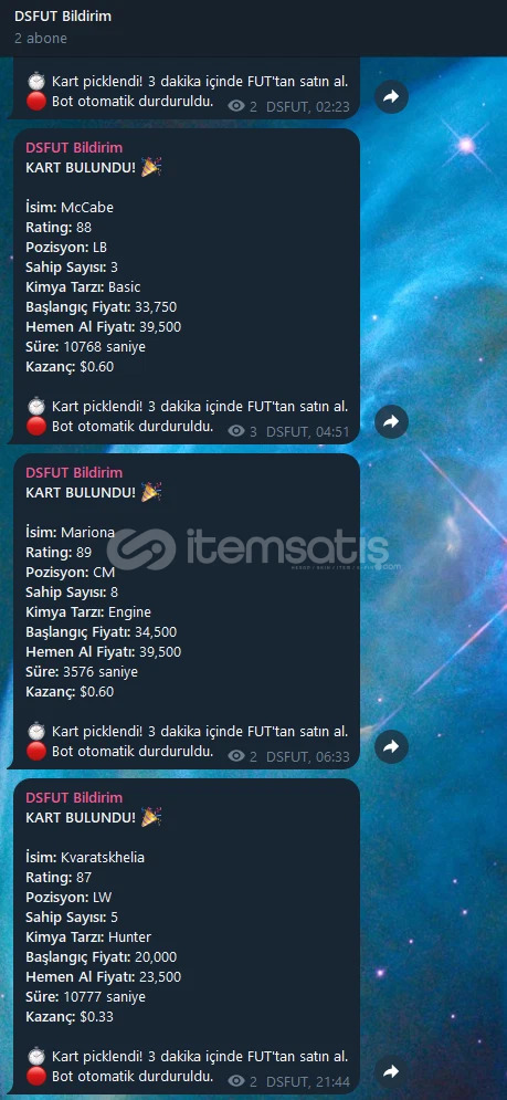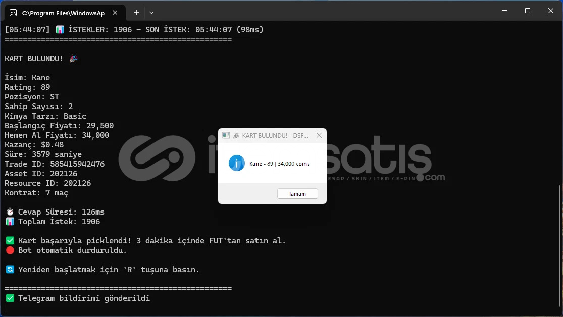 ➡️ DSFUT.NET sitesinde listelenen kartlar manuel olarak picklenebilir lakin diğer kullanıcıların bir çoğu API yazılımı kullandığı için sizden önce kartı pickler ve coin satışını yapmış olur.
