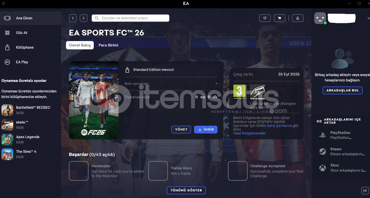 EA Play uygulaması içerisinde ki 70$'lik(2975TL) üründür.