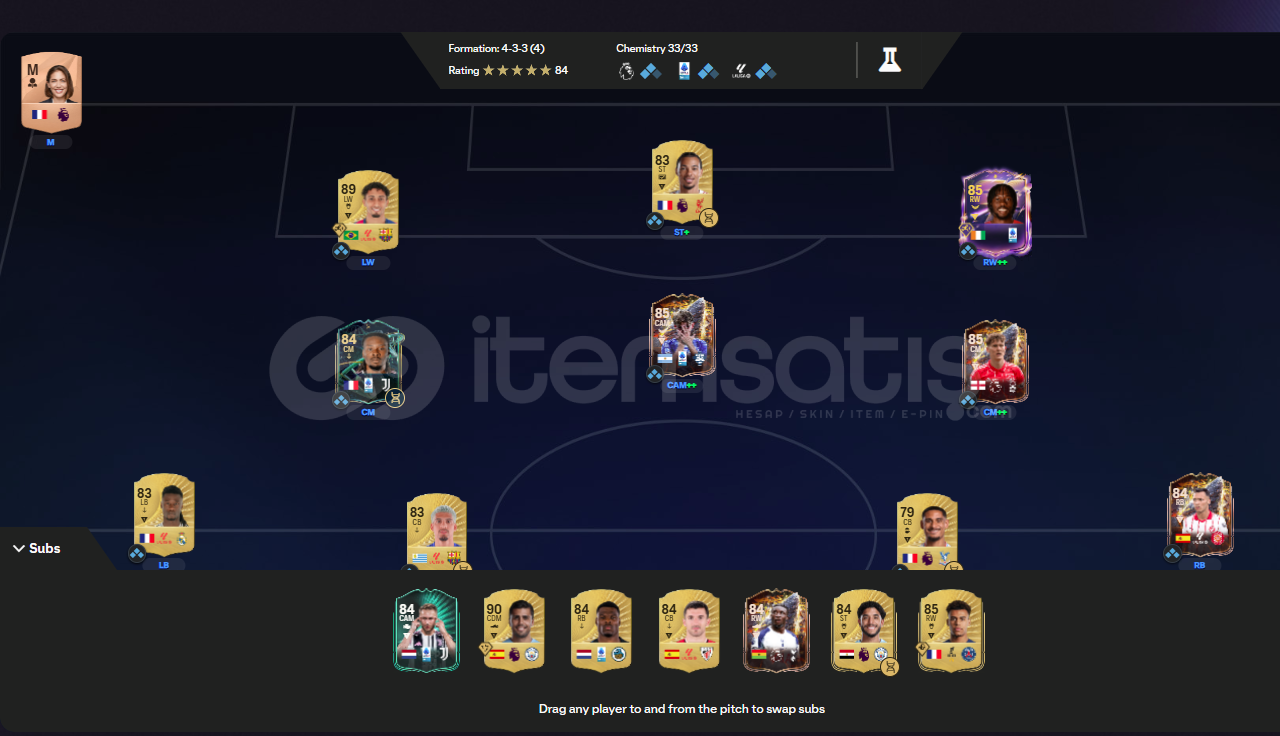FC 26 ULTİME TEAM HESAP 3250 Points+2k ay başı gelcek 138.000 coin Kadroda SLK-RAPHİNA ST-KUDUS (rotasyon- marmoush)SĞK Gervinho (rotasyon-Doue)CAM Nico pazcm Evo Thuram cm Yates promorb-arnau martinez promocb1 lacorixcb2 araujolb-camavincagk-yashin